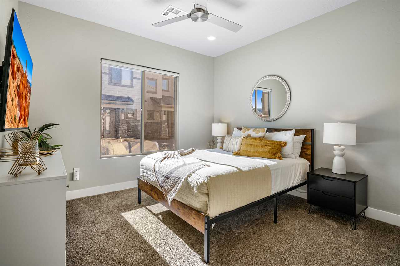 Desert Sky is the perfect desert oasis for your next unforgettable vacation! Located in the sought-after Zion Village Resort, this home is packed with fun and relaxation for the whole family. Jump into endless adventure with access to a year-round heated lazy river, a thrilling splash pad, a hot tub, and sparkling pools, along with pickleball courts for some friendly competition!