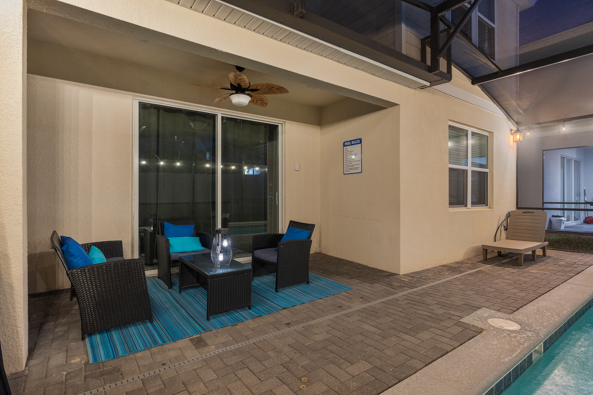 Escape to Chillax Inn Summer, a 5-bedroom vacation rental perfect for families, located in the serene Windsor Island Resort. Enjoy themed bedrooms for the kids, a private pool, and a free in-home arcade. The home offers a spacious kitchen, multiple dining options, and access to resort amenities like a clubhouse, communal pool, and gym. With a private fenced backyard, this home comfortably sleeps up to 10 guests.