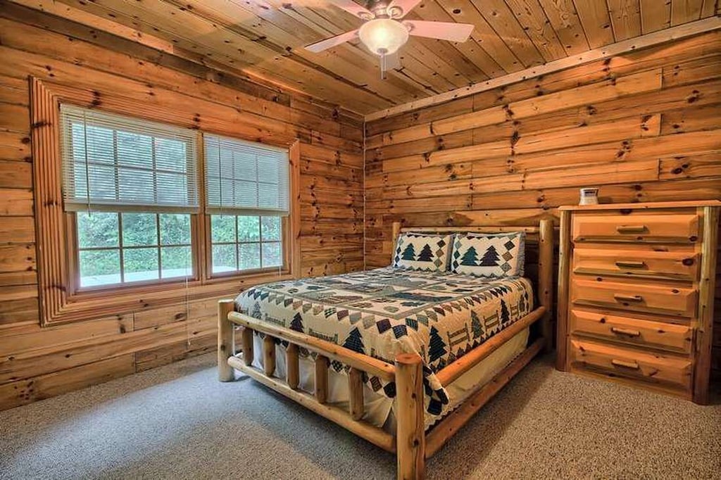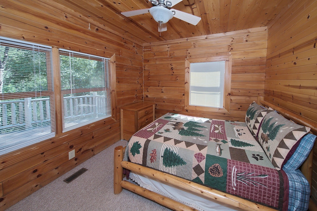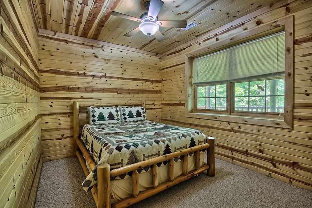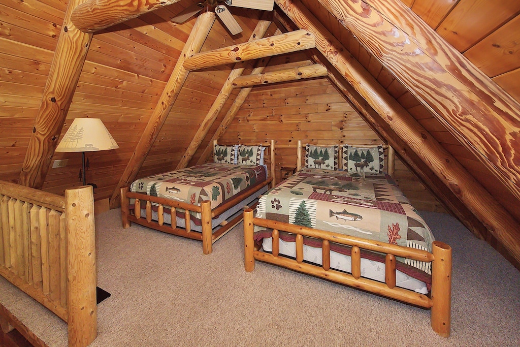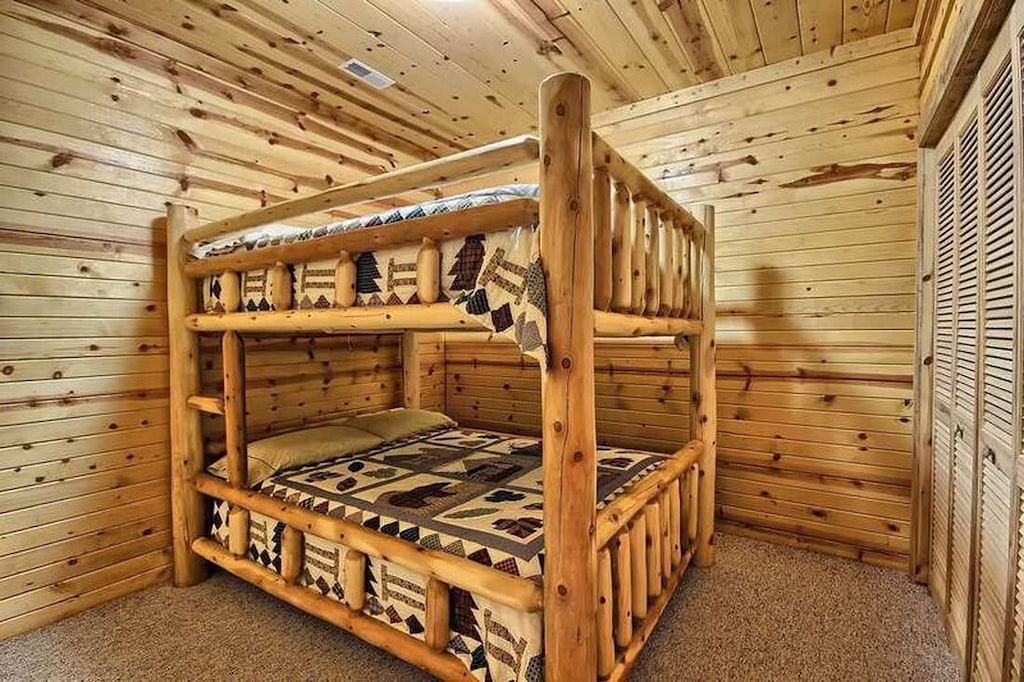 Bedroom 8 Custom log bunks with full size mattress top and bottom