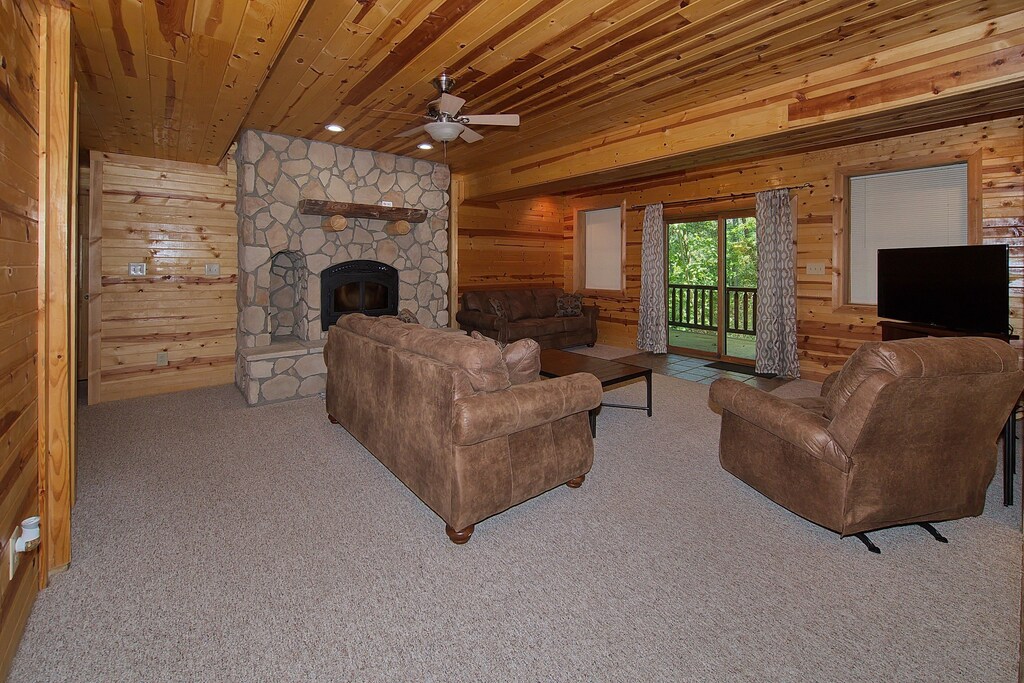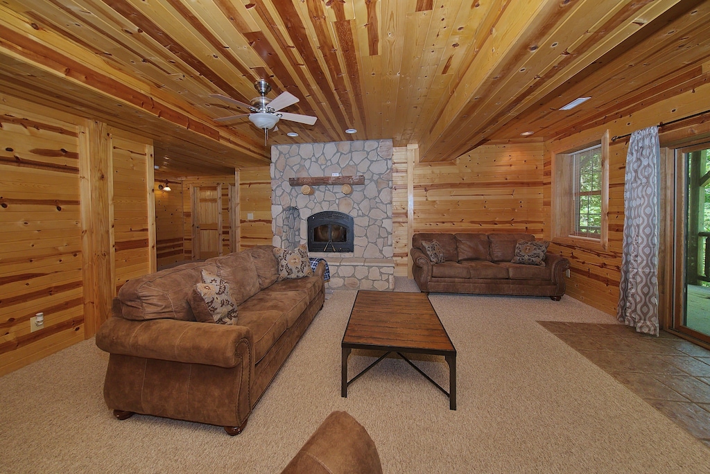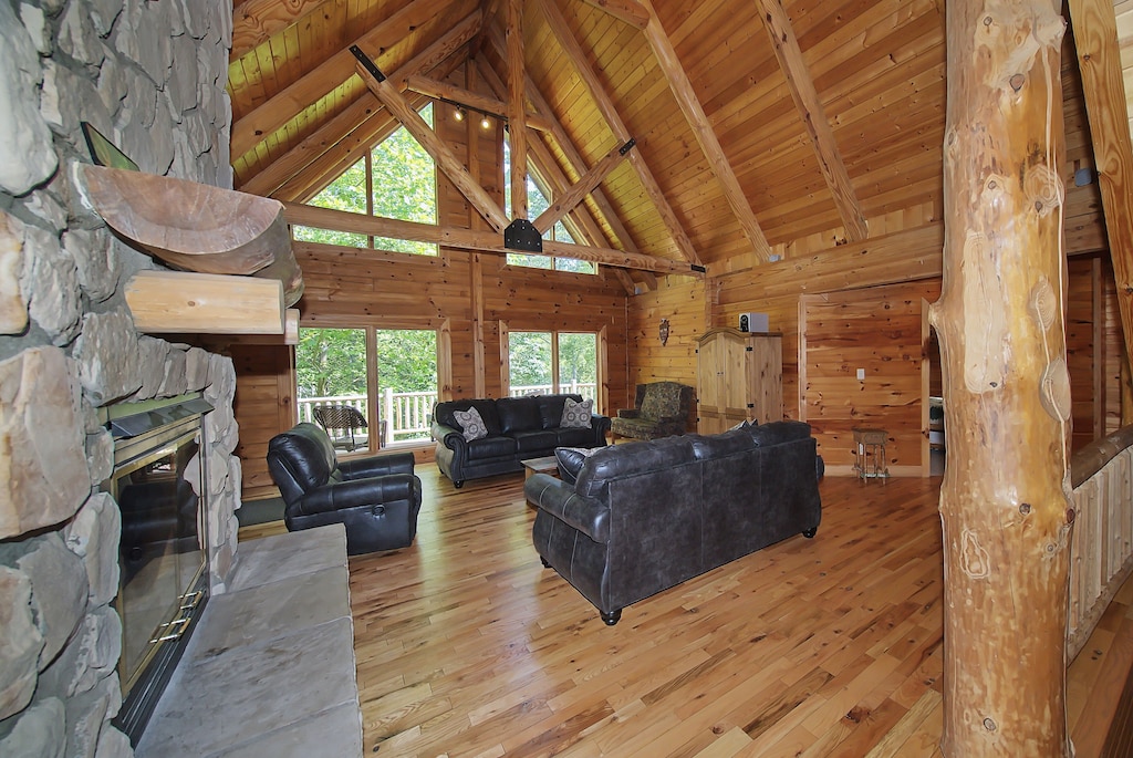 With room to sleep up to 18 guests comfortably, this cabin features two fully equipped kitchens, two large great rooms, and plenty of space for gathering, relaxing, or enjoying quiet time in nature.