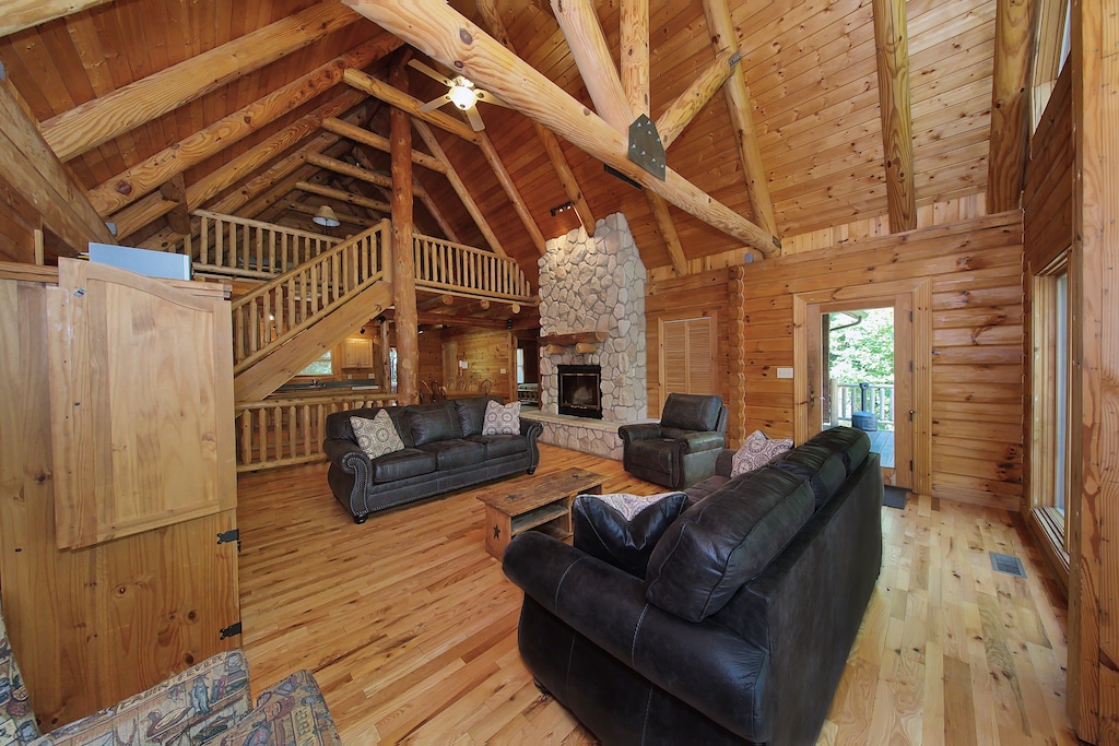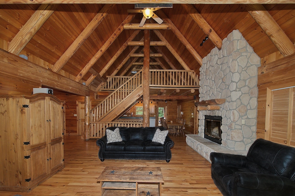 Welcome to our 8-bedroom, 4-bathroom log cabin at Martinwoods Cabins — the ultimate getaway for families, reunions, retreats, and group vacations in beautiful Hocking Hills, Ohio. Tucked away on a private wooded lot, this spacious retreat offers complete privacy with no visible neighbors, roads, or nearby cabins.