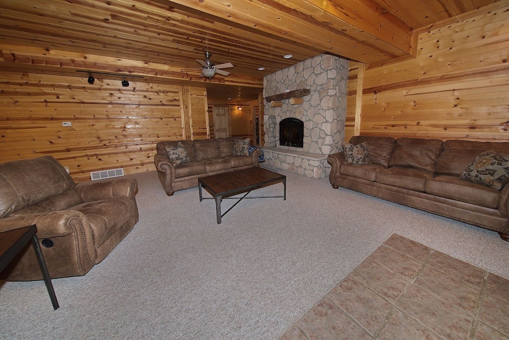 2 spacious great rooms – ideal for games, movies, or relaxing by the fireplace