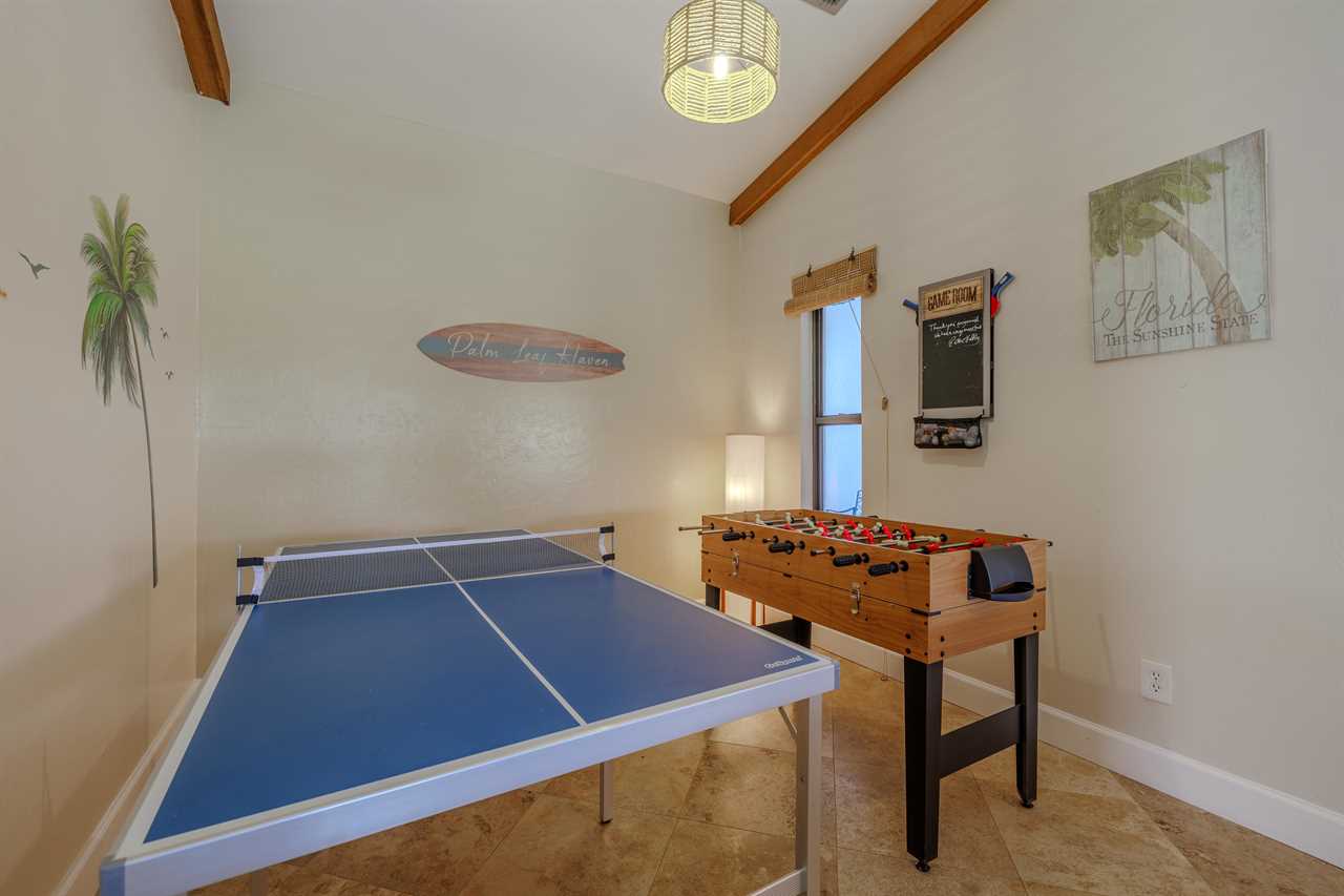 Daybed & Workspace Retreat: The current game room will soon be transformed into a versatile space featuring a cozy daybed and a dedicated workspace, perfect for remote work or a quiet retreat. This addition will increase the villa's capacity to sleep 10 guests, making it an even better choice for larger groups. Plus, the game tables, including foosball and ping pong, will be relocated to the garage and patio areas, ensuring the fun continues in a new setting. Stay tuned for these enhancements, designed to elevate your vacation experience!