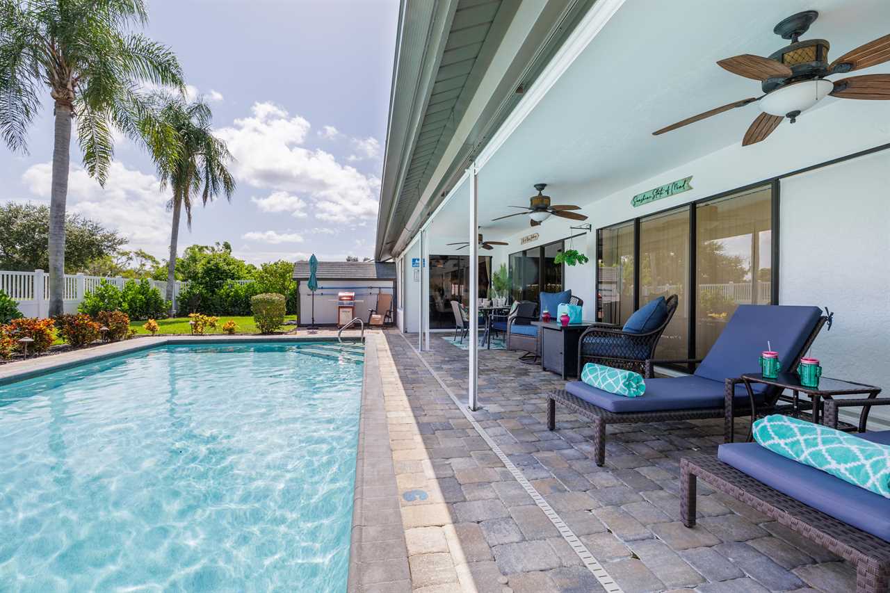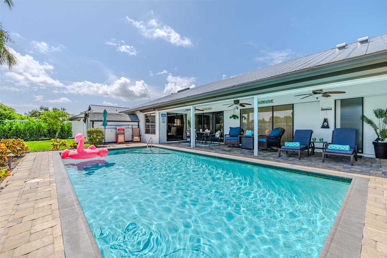 Heated Pool: Dive into the sparkling heated pool, a private oasis where you can swim, float, or soak up the Florida sun, surrounded by the lush ambiance of palm trees.