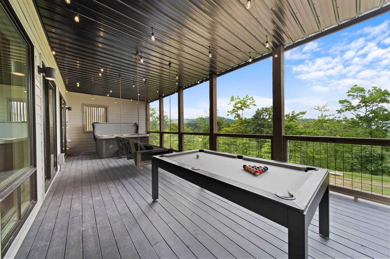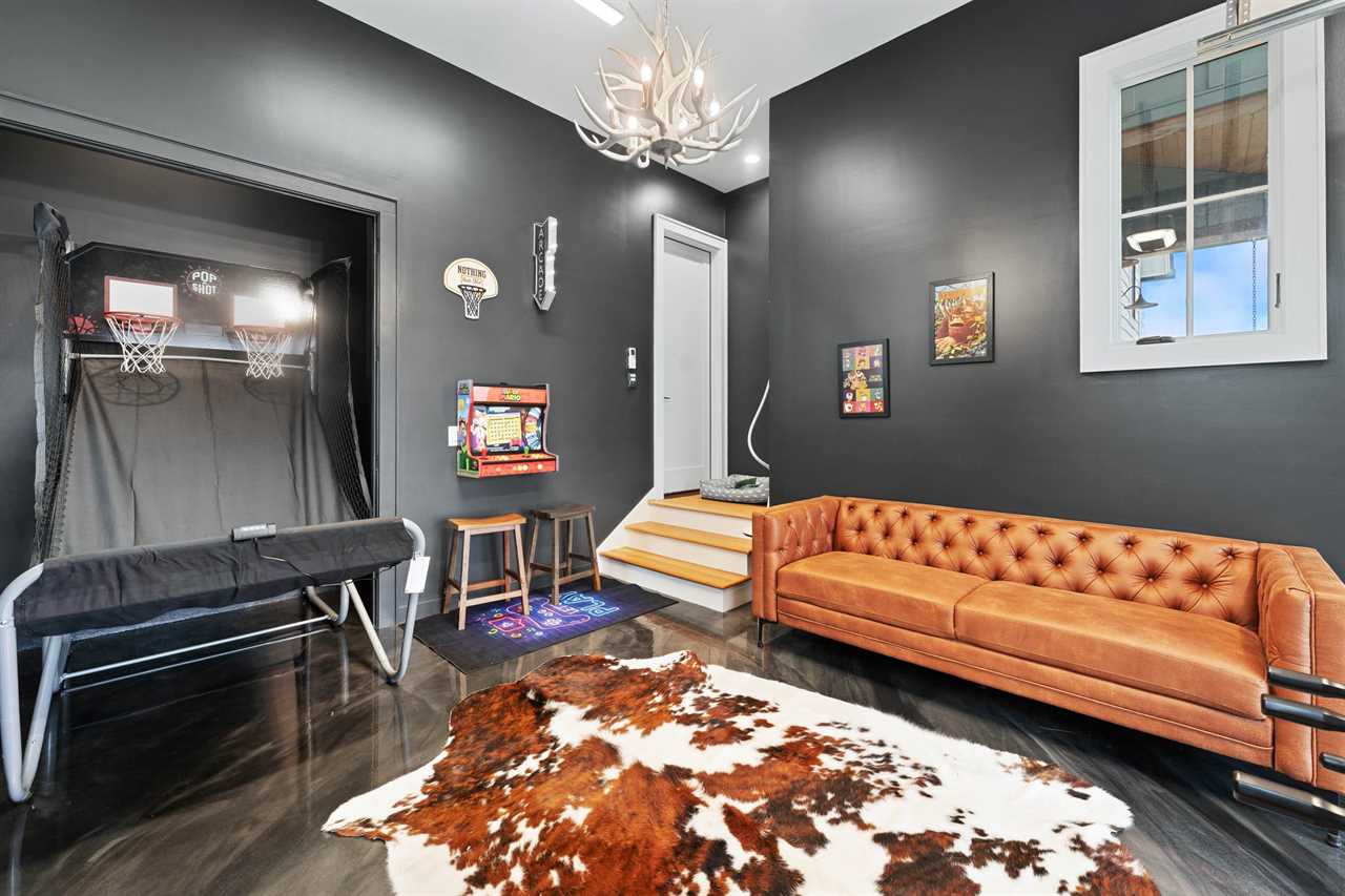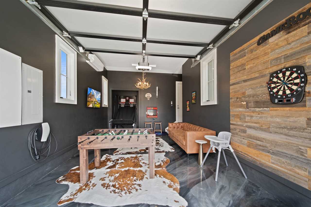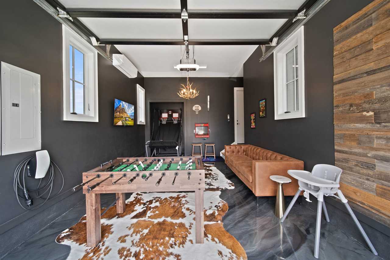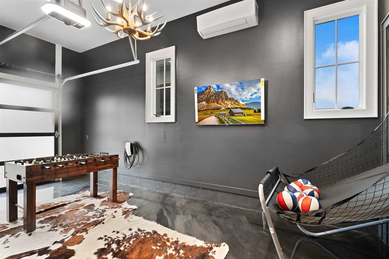 Downstairs is even more to discover: the lower deck beckons with a bubbling hot tub, a swinging lounge bench, and space to breathe in the mountain air. Kids (and the young at heart) will love the quaint playhouse filled with interactive toys, while the garage game room delivers hours of fun with foosball, basketball shootout, an arcade game, darts, a leather sofa, and a big-screen TV.
