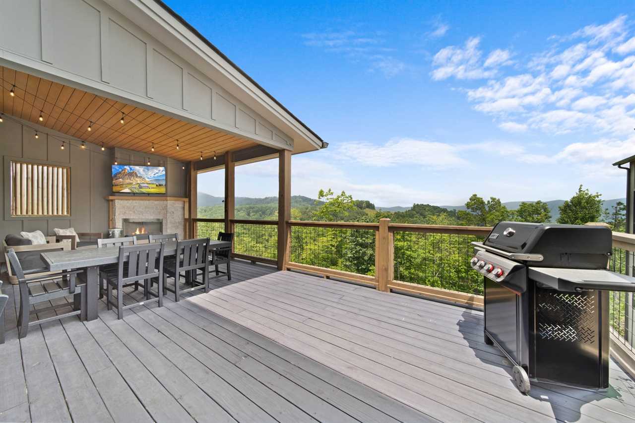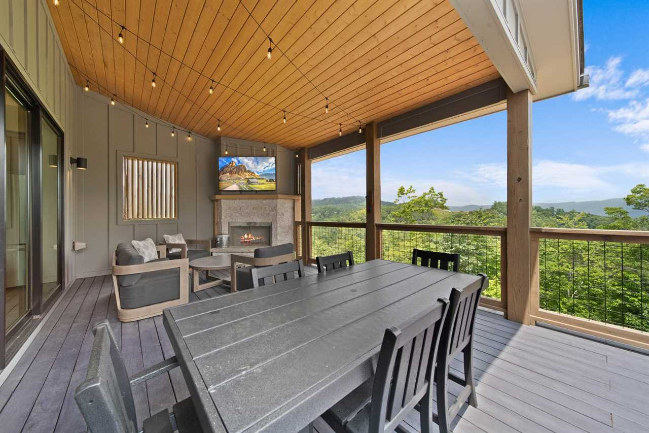Step inside to an airy, open-concept main level where every inch speaks of thoughtful design — from the gas log fireplace and high-end furnishings to the custom tile work and designer hardware that grace every bathroom, comfort and luxury are around every corner. The heart of the home is warm and inviting, with a fully stocked gourmet kitchen, a cozy living area, and a wall of glass doors that invite you out to the main deck. Out there, you'll find outdoor dining, a crackling wood-burning fireplace, a mounted TV, and sweeping mountain views that practically demand you stay for "just one more sunset."