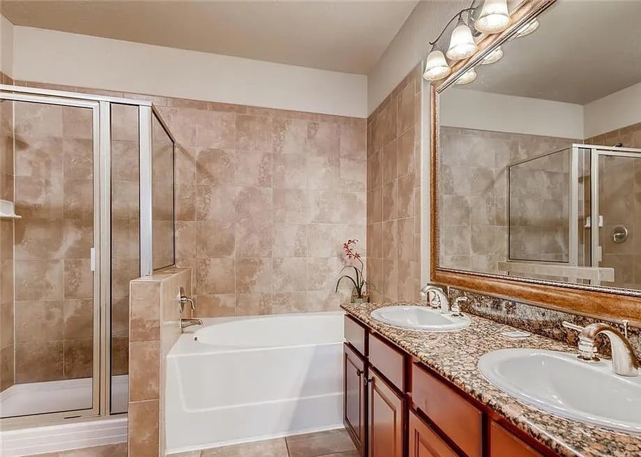 Master Suite with king bed, en-suite bath (with Roman tub & shower), and TV