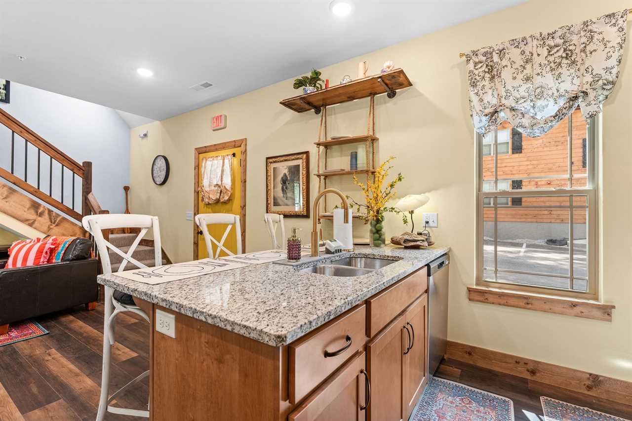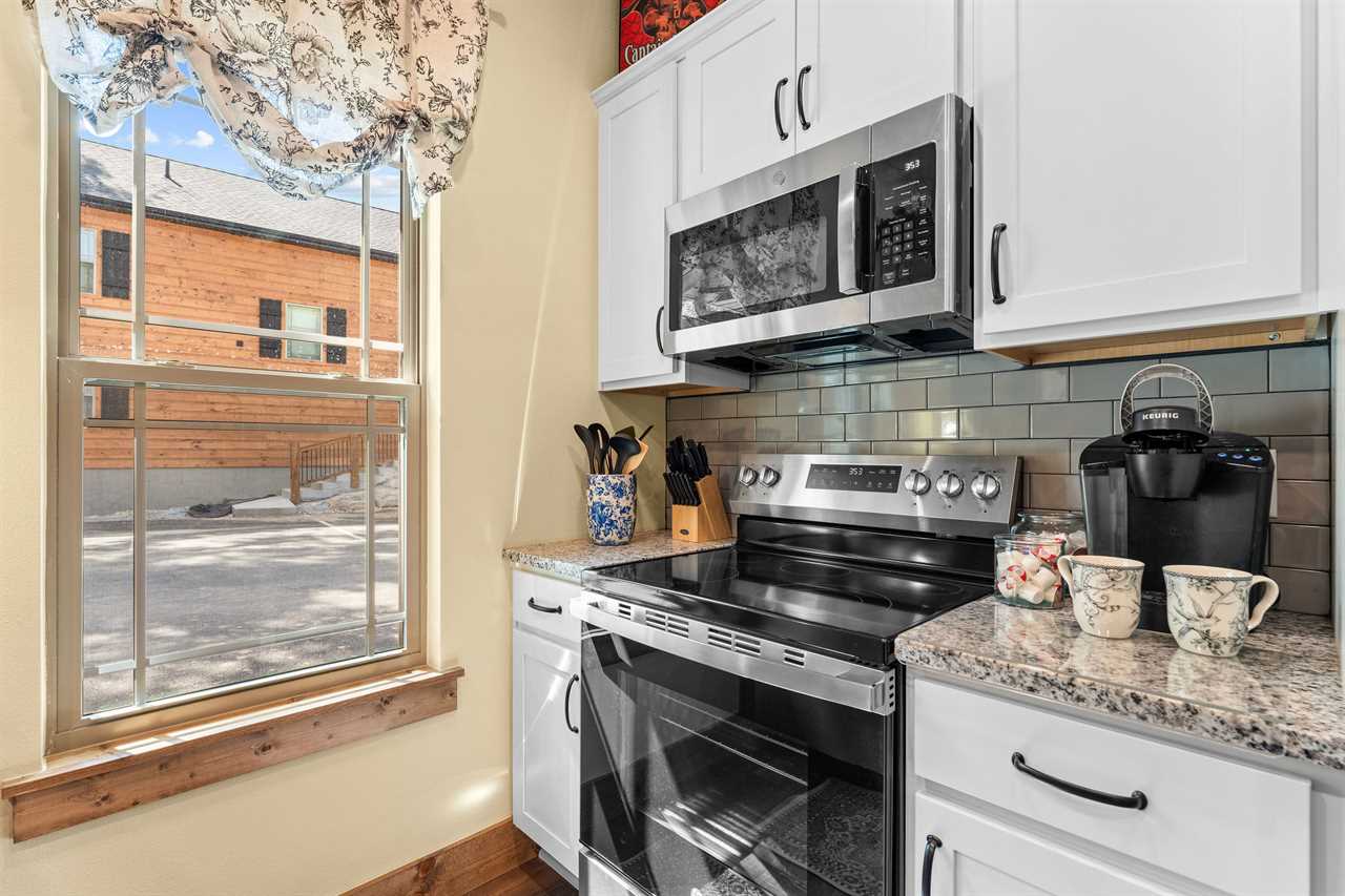 ✦ ✦ Full kitchen with stainless appliances, granite counters, and coffee essentials