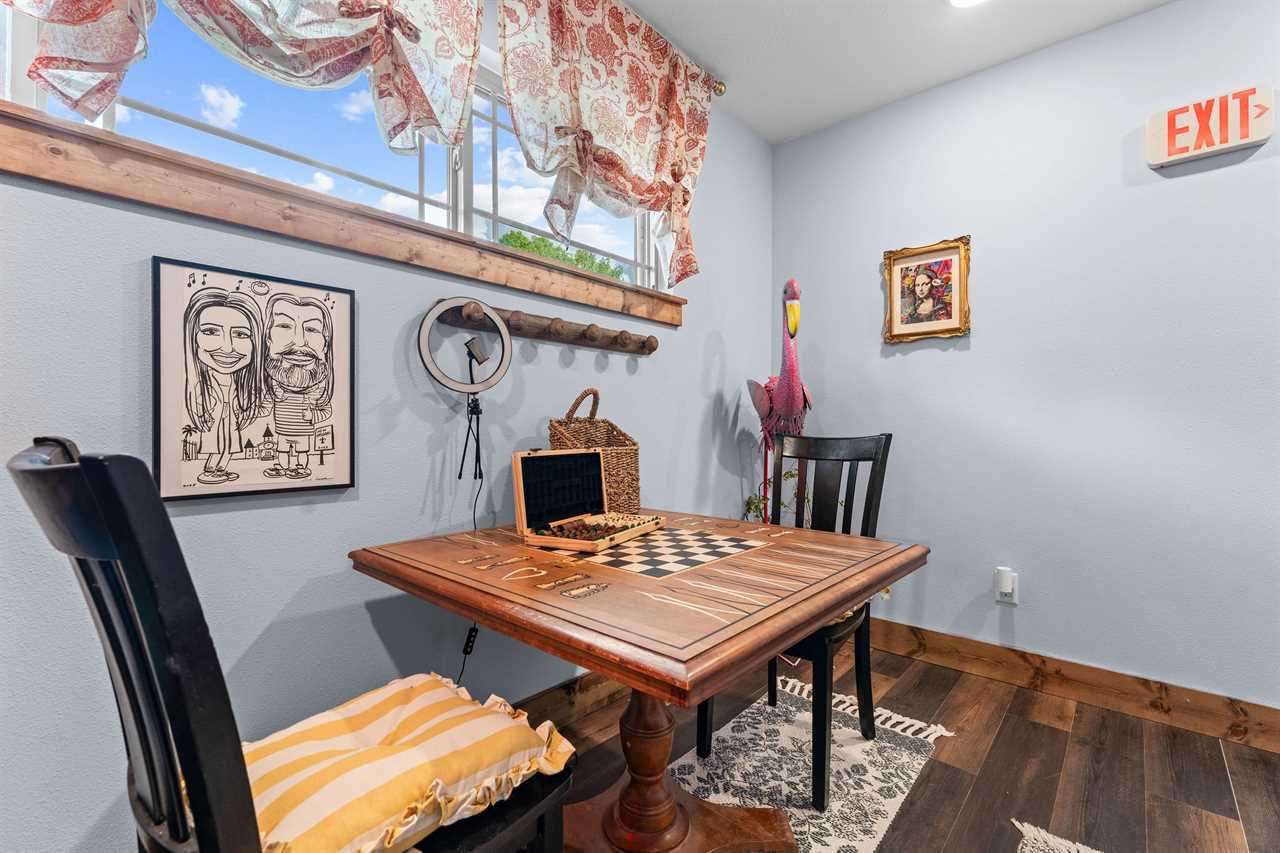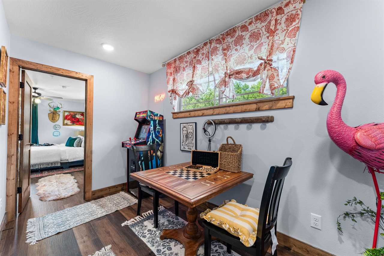 ✦ ✦ Counter seating plus checker/chess table for games and meals