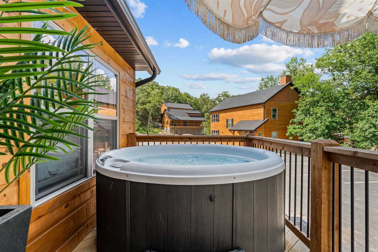 When evening rolls in, that's when the magic happens — string lights glowing softly, the hot tub bubbling under the stars, and laughter drifting through the night air. Fire up the electric grill, pour a drink, turn on your favorite music, and settle into that perfect blend of resort comfort and laid-back Ozark style.