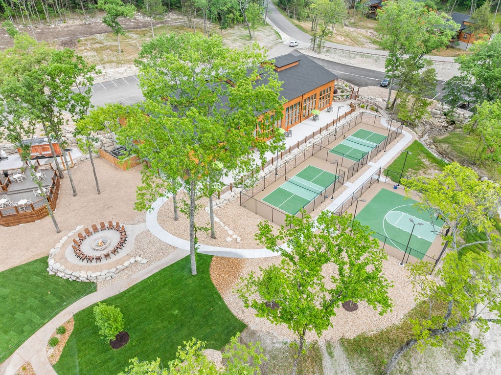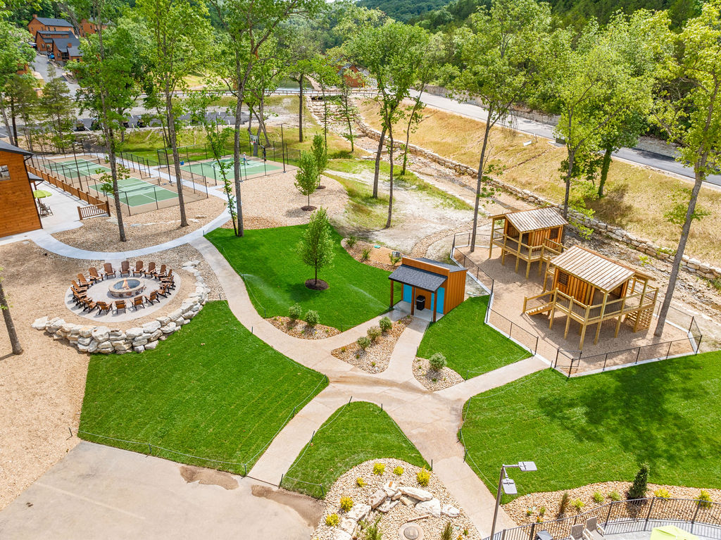✦ ✦ Treehouse-style playground, community firepit, and scenic resort layout