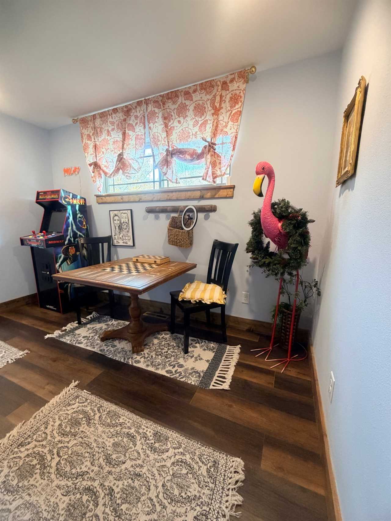 ✦ ✦ Eclectic art installations and flamingo-chic game nook