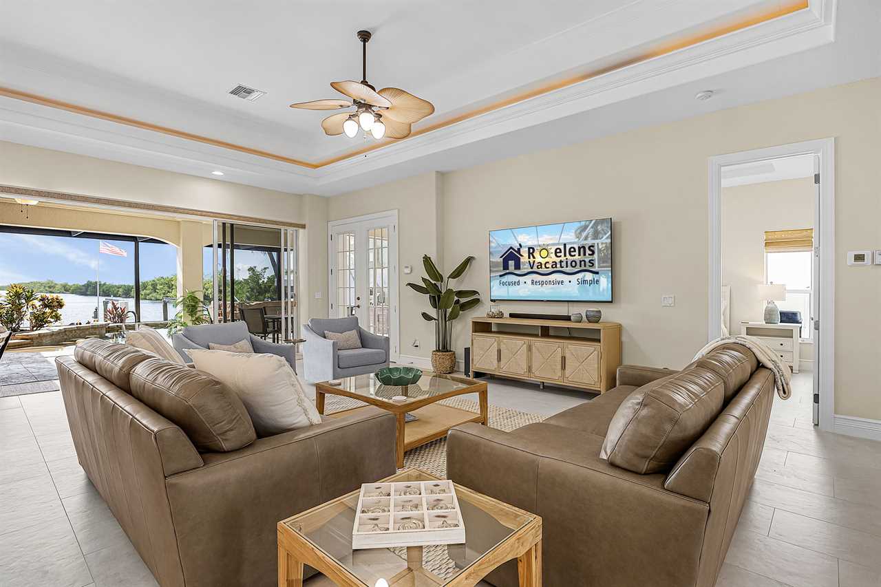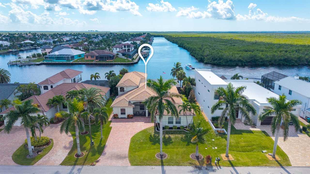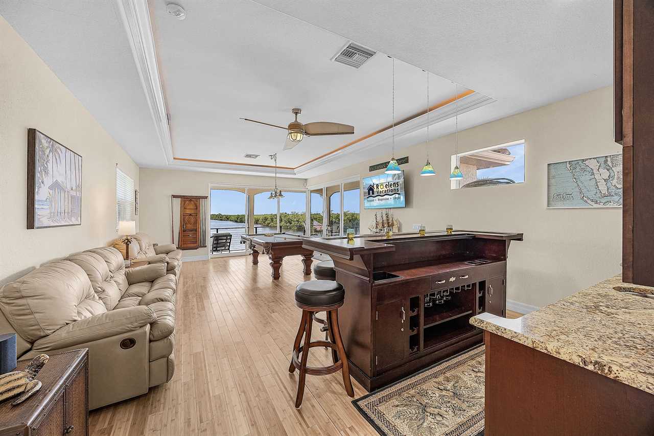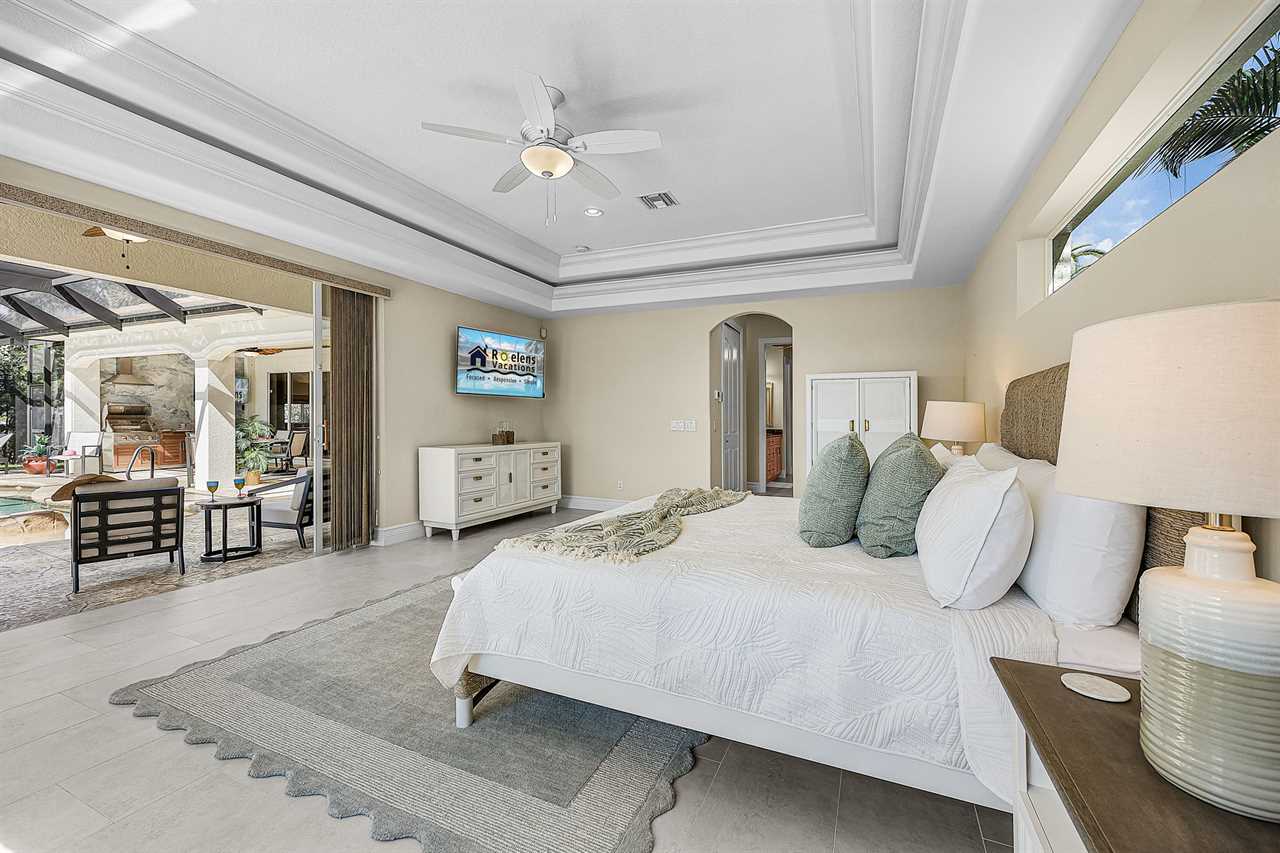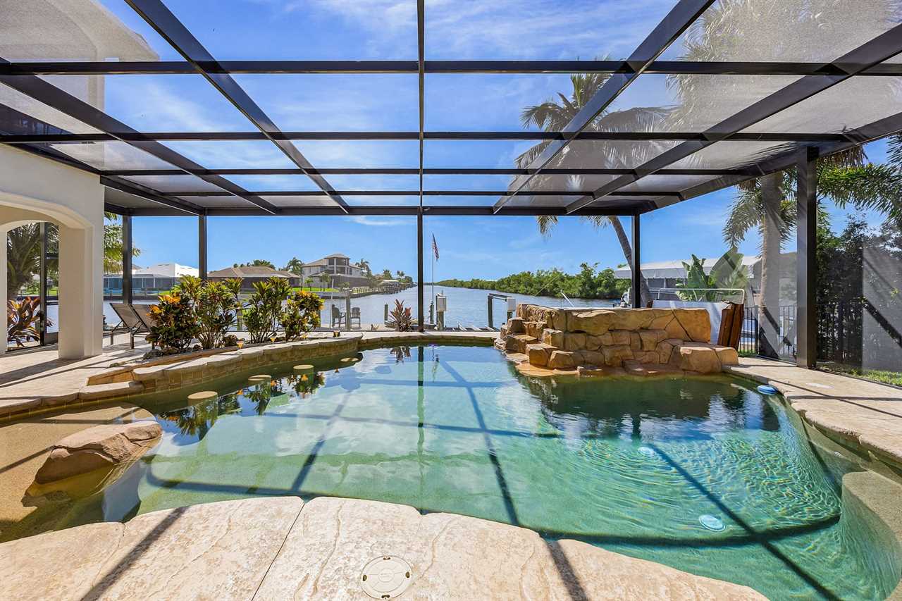Coral Horizon Villa Where Luxury Meets the Horizon Welcome to Coral Horizon Villa, your ultimate Cape Coral escape where sunshine, style, and serenity come together. Designed for family gatherings and unforgettable getaways, this stunning home offers the perfect blend of comfort and waterfront adventure. From sunrise coffee on the lanai to sunset swims in the private pool, every moment here feels like a dream. Here's what makes this home so special: Bedding Arrangement: 5 Bedrooms: Master Suite 1: King-size bed, Smart TV, direct lanai access, ensuite bathroom Master Suite 2: King-size bed, Smart TV, ensuite bathroom, ensuite office with direct lanai access Guest Bedroom 1: Queen-size bed, Smart TV Guest Bedroom 2: Queen-size bed, Twin over Full bunkbeds Guest Bedroom 3: Two XL Twin-size beds Top Features Sleeps 13 Heated Pool & Spa with Swim-Up Bar: Spend your days soaking up the Florida sunshine in the heated pool or unwind in the bubbling spa. The swim-up bar adds a fun resort-style touch, making it easy to sip cocktails without ever leaving the water. It's the ultimate spot for both relaxation and celebration. Expansive Lanai with Grill: The spacious screened lanai offers the perfect blend of shade and sun. Fire up the grill for a family barbecue, dine al fresco at the outdoor table, or relax in the lounge area as the evening breeze sets in. This is Florida living at its finest. Spacious Living Room: With soaring ceilings, abundant natural light, and plush seating, the living room is designed to bring everyone together. Enjoy movie nights on the Smart TV, gather for games, or simply stretch out and relax after a day of adventure. Game Room with Pool Table & Bar: Keep the good times rolling even when indoors. Challenge friends to a game of pool, mix up drinks at the bar, or enjoy laughter-filled evenings in this dedicated entertainment space. Perfect for both adults and kids, rain or shine. Gulf Access & Private Dock: Launch your boat or kayak right from the private dock and set off on a Gulf adventure. Whether you're fishing, cruising through Cape Coral's scenic canals, or heading out to the open water, the dock makes it easy to embrace waterfront living. Bikes Included: Discover Cape Coral at a slower pace with complimentary bikes. Cruise along palm-lined streets, explore nearby parks, or ride out to grab a coffee or ice cream. It's the perfect way to enjoy the laid-back lifestyle of this coastal town Nestled in one of Cape Coral's most desirable neighborhoods, Coral Horizon Villa places you close to marinas, dining, shopping, and the best local beaches. Whether you're planning a family vacation, a reunion, or simply a relaxing retreat, this home has everything you need to create lasting memories. Book your stay at Coral Horizon Villa today and experience the perfect blend of relaxation and adventure! Roelens Vacations is proud to partner with the city to promote recycling and make our community more sustainable and greener. Thank you for your cooperation and for being part of a more sustainable future! DISCLAIMERS: This home does not allow pets. This home has a minimum age requirement of 25 to book. Smoking is not allowed on the property.