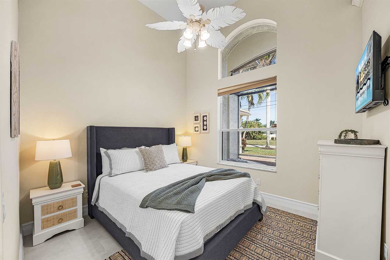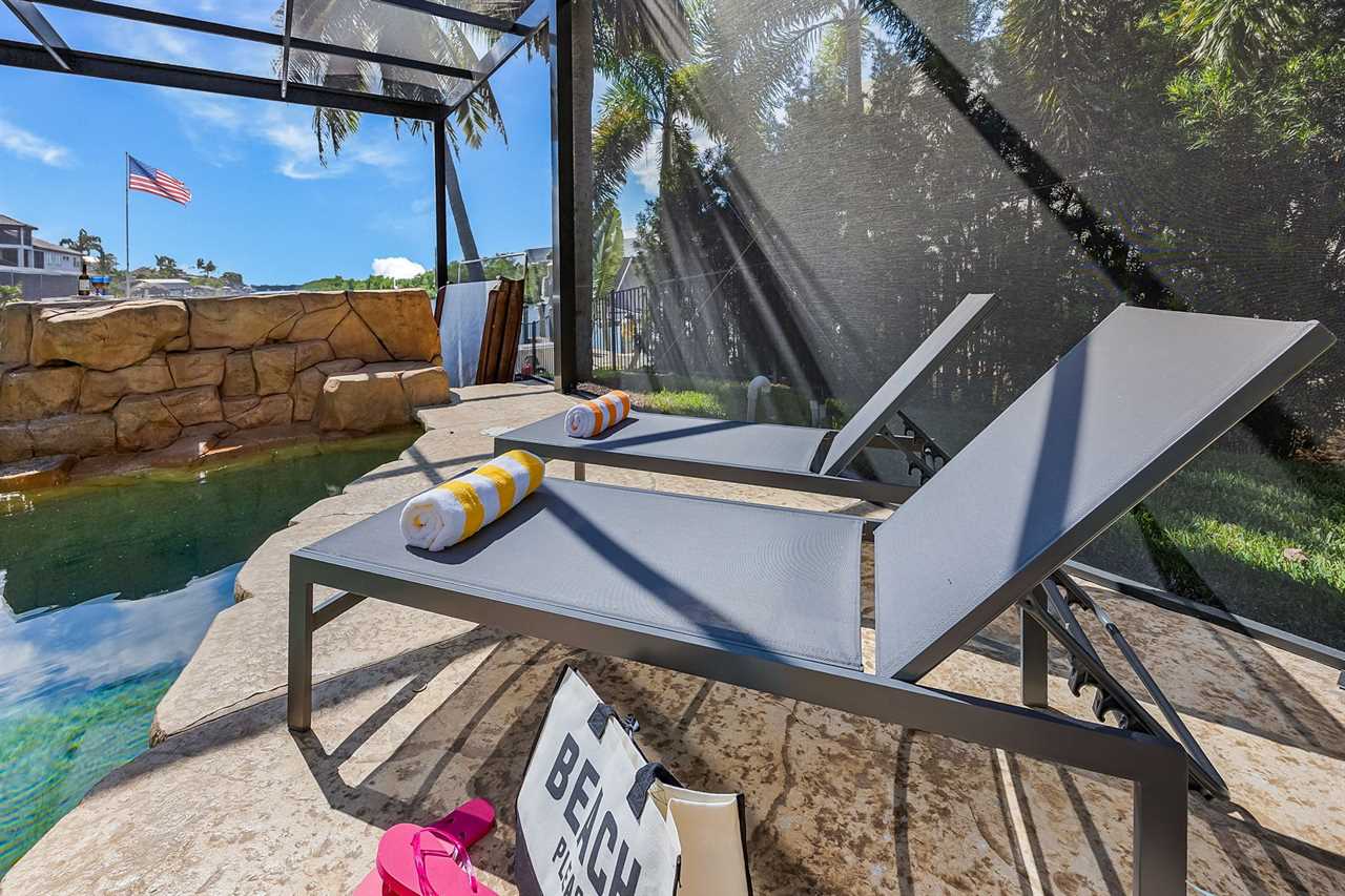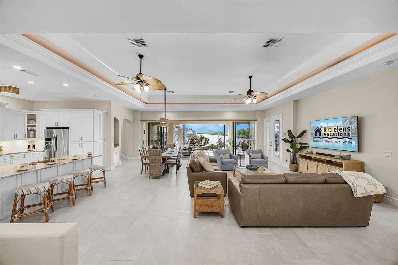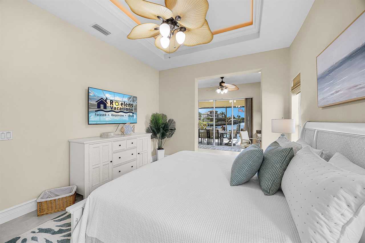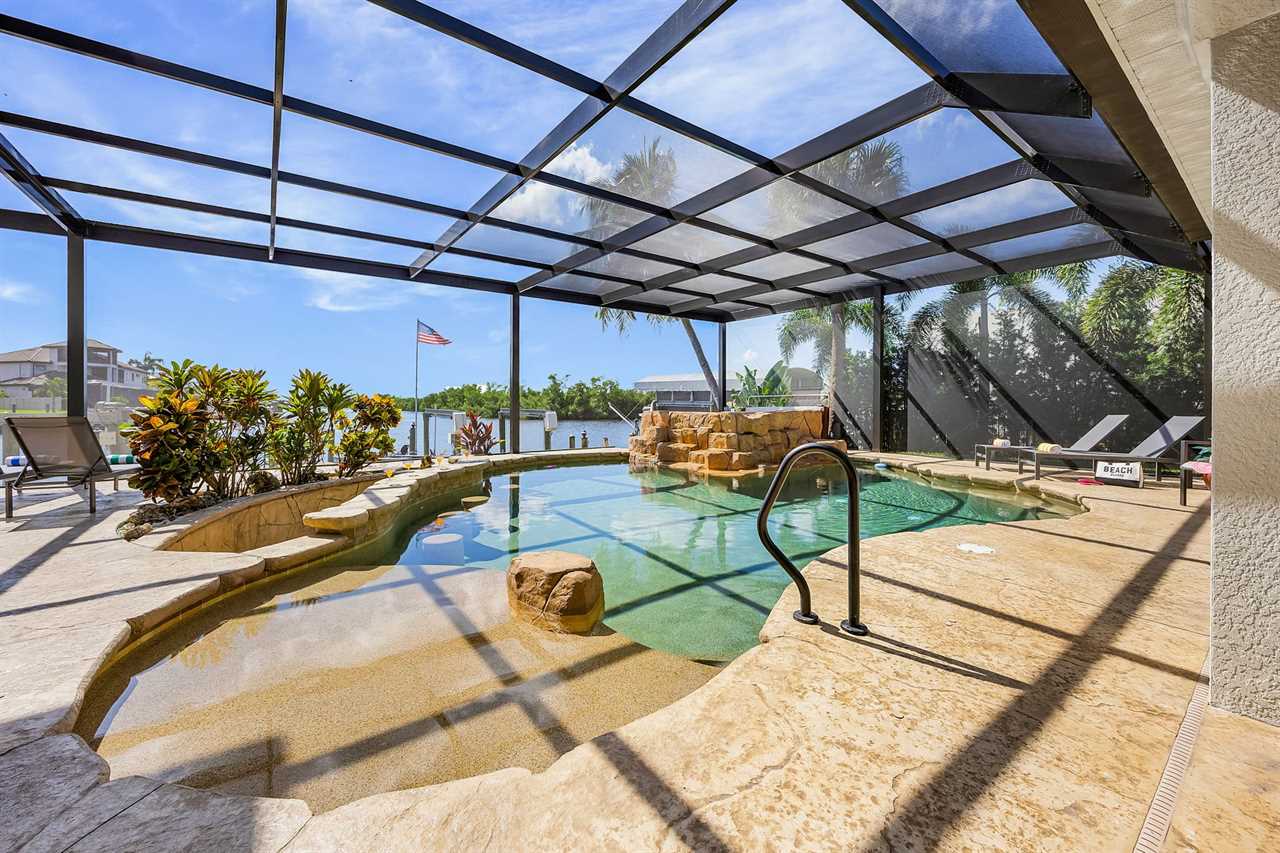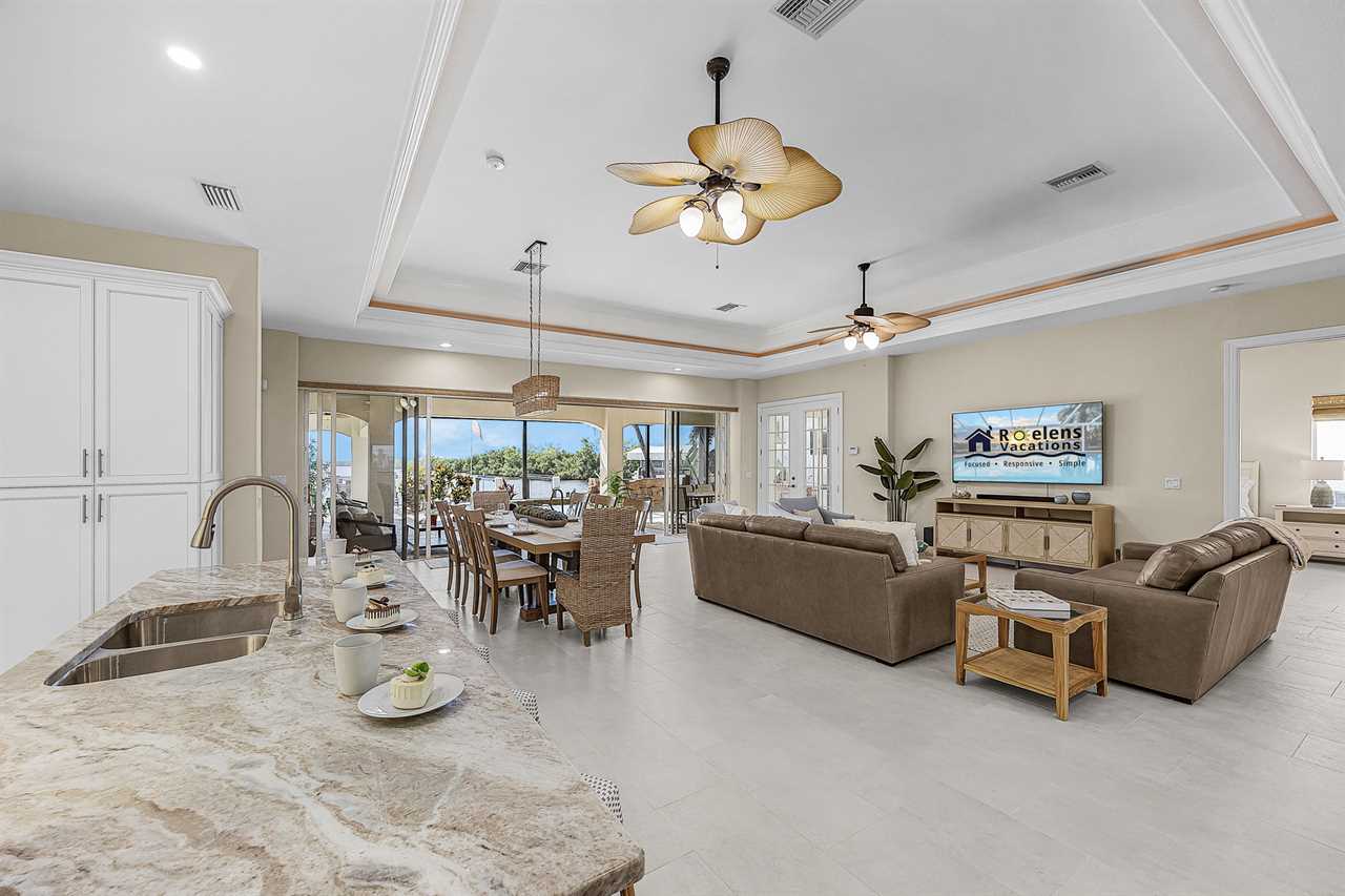 Coral Horizon Villa Where Luxury Meets the Horizon Welcome to Coral Horizon Villa, your ultimate Cape Coral escape where sunshine, style, and serenity come together. Designed for family gatherings and unforgettable getaways, this stunning home offers the perfect blend of comfort and waterfront adventure. From sunrise coffee on the lanai to sunset swims in the private pool, every moment here feels like a dream. Here's what makes this home so special: Bedding Arrangement: 5 Bedrooms: Master Suite 1: King-size bed, Smart TV, direct lanai access, ensuite bathroom Master Suite 2: King-size bed, Smart TV, ensuite bathroom, ensuite office with direct lanai access Guest Bedroom 1: Queen-size bed, Smart TV Guest Bedroom 2: Queen-size bed, Twin over Full bunkbeds Guest Bedroom 3: Two XL Twin-size beds Top Features Sleeps 13 Heated Pool & Spa with Swim-Up Bar: Spend your days soaking up the Florida sunshine in the heated pool or unwind in the bubbling spa. The swim-up bar adds a fun resort-style touch, making it easy to sip cocktails without ever leaving the water. It's the ultimate spot for both relaxation and celebration. Expansive Lanai with Grill: The spacious screened lanai offers the perfect blend of shade and sun. Fire up the grill for a family barbecue, dine al fresco at the outdoor table, or relax in the lounge area as the evening breeze sets in. This is Florida living at its finest. Spacious Living Room: With soaring ceilings, abundant natural light, and plush seating, the living room is designed to bring everyone together. Enjoy movie nights on the Smart TV, gather for games, or simply stretch out and relax after a day of adventure. Game Room with Pool Table & Bar: Keep the good times rolling even when indoors. Challenge friends to a game of pool, mix up drinks at the bar, or enjoy laughter-filled evenings in this dedicated entertainment space. Perfect for both adults and kids, rain or shine. Gulf Access & Private Dock: Launch your boat or kayak right from the private dock and set off on a Gulf adventure. Whether you're fishing, cruising through Cape Coral's scenic canals, or heading out to the open water, the dock makes it easy to embrace waterfront living. Bikes Included: Discover Cape Coral at a slower pace with complimentary bikes. Cruise along palm-lined streets, explore nearby parks, or ride out to grab a coffee or ice cream. It's the perfect way to enjoy the laid-back lifestyle of this coastal town Nestled in one of Cape Coral's most desirable neighborhoods, Coral Horizon Villa places you close to marinas, dining, shopping, and the best local beaches. Whether you're planning a family vacation, a reunion, or simply a relaxing retreat, this home has everything you need to create lasting memories. Book your stay at Coral Horizon Villa today and experience the perfect blend of relaxation and adventure! Roelens Vacations is proud to partner with the city to promote recycling and make our community more sustainable and greener. Thank you for your cooperation and for being part of a more sustainable future! DISCLAIMERS: This home does not allow pets. This home has a minimum age requirement of 25 to book. Smoking is not allowed on the property.