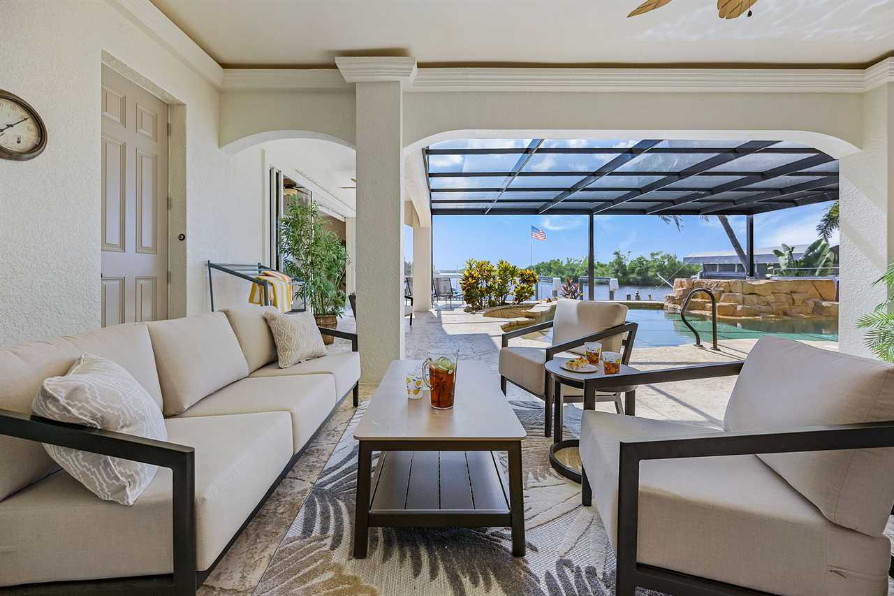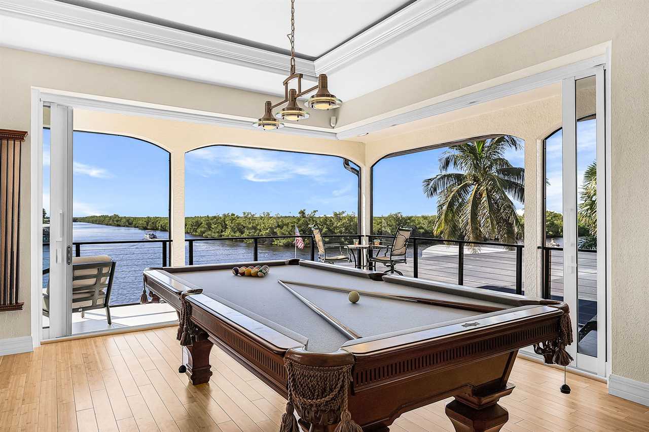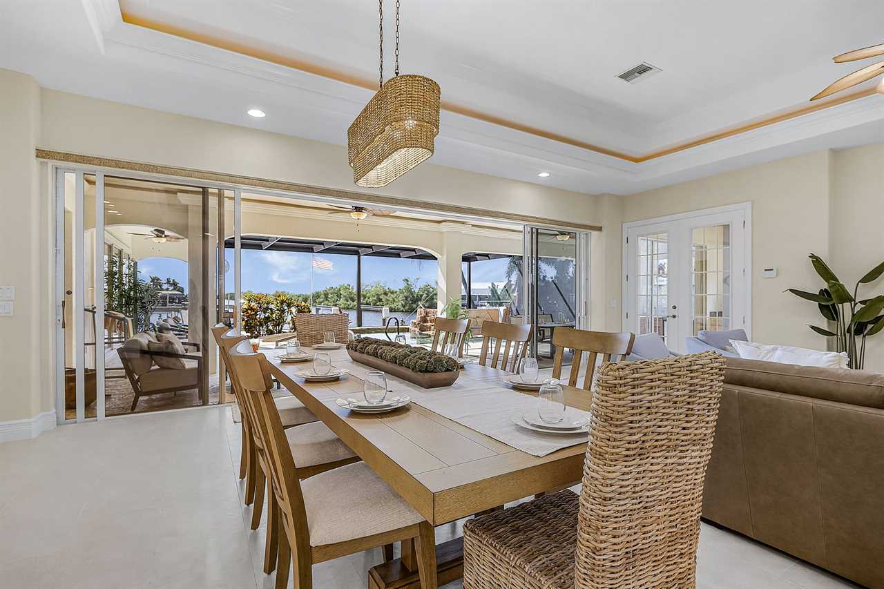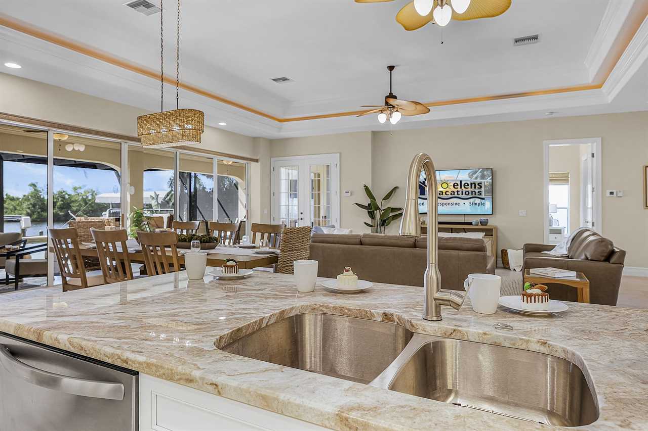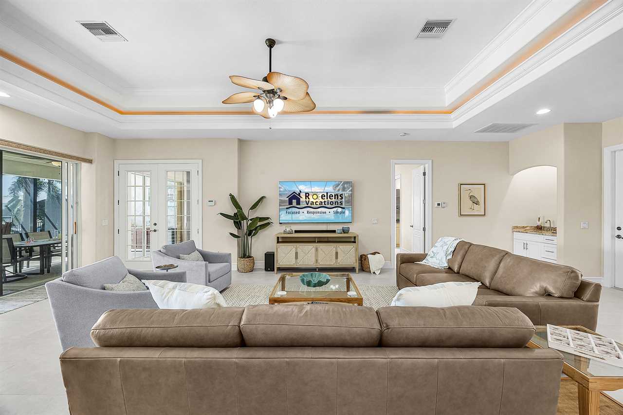 Coral Horizon Villa Where Luxury Meets the Horizon Welcome to Coral Horizon Villa, your ultimate Cape Coral escape where sunshine, style, and serenity come together. Designed for family gatherings and unforgettable getaways, this stunning home offers the perfect blend of comfort and waterfront adventure. From sunrise coffee on the lanai to sunset swims in the private pool, every moment here feels like a dream. Here's what makes this home so special: Bedding Arrangement: 5 Bedrooms: Master Suite 1: King-size bed, Smart TV, direct lanai access, ensuite bathroom Master Suite 2: King-size bed, Smart TV, ensuite bathroom, ensuite office with direct lanai access Guest Bedroom 1: Queen-size bed, Smart TV Guest Bedroom 2: Queen-size bed, Twin over Full bunkbeds Guest Bedroom 3: Two XL Twin-size beds Top Features Sleeps 13 Heated Pool & Spa with Swim-Up Bar: Spend your days soaking up the Florida sunshine in the heated pool or unwind in the bubbling spa. The swim-up bar adds a fun resort-style touch, making it easy to sip cocktails without ever leaving the water. It's the ultimate spot for both relaxation and celebration. Expansive Lanai with Grill: The spacious screened lanai offers the perfect blend of shade and sun. Fire up the grill for a family barbecue, dine al fresco at the outdoor table, or relax in the lounge area as the evening breeze sets in. This is Florida living at its finest. Spacious Living Room: With soaring ceilings, abundant natural light, and plush seating, the living room is designed to bring everyone together. Enjoy movie nights on the Smart TV, gather for games, or simply stretch out and relax after a day of adventure. Game Room with Pool Table & Bar: Keep the good times rolling even when indoors. Challenge friends to a game of pool, mix up drinks at the bar, or enjoy laughter-filled evenings in this dedicated entertainment space. Perfect for both adults and kids, rain or shine. Gulf Access & Private Dock: Launch your boat or kayak right from the private dock and set off on a Gulf adventure. Whether you're fishing, cruising through Cape Coral's scenic canals, or heading out to the open water, the dock makes it easy to embrace waterfront living. Bikes Included: Discover Cape Coral at a slower pace with complimentary bikes. Cruise along palm-lined streets, explore nearby parks, or ride out to grab a coffee or ice cream. It's the perfect way to enjoy the laid-back lifestyle of this coastal town Nestled in one of Cape Coral's most desirable neighborhoods, Coral Horizon Villa places you close to marinas, dining, shopping, and the best local beaches. Whether you're planning a family vacation, a reunion, or simply a relaxing retreat, this home has everything you need to create lasting memories. Book your stay at Coral Horizon Villa today and experience the perfect blend of relaxation and adventure! Roelens Vacations is proud to partner with the city to promote recycling and make our community more sustainable and greener. Thank you for your cooperation and for being part of a more sustainable future! DISCLAIMERS: This home does not allow pets. This home has a minimum age requirement of 25 to book. Smoking is not allowed on the property.