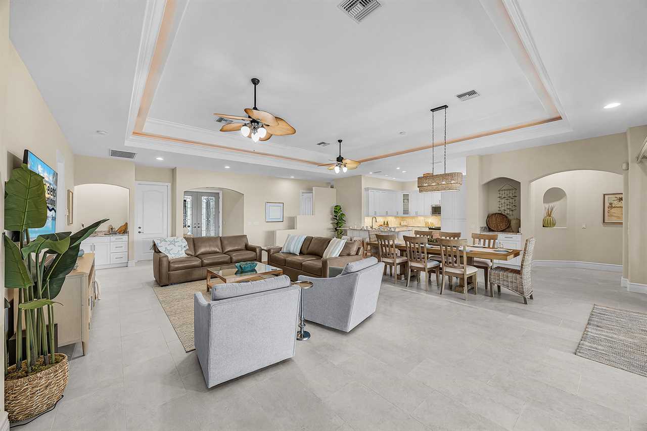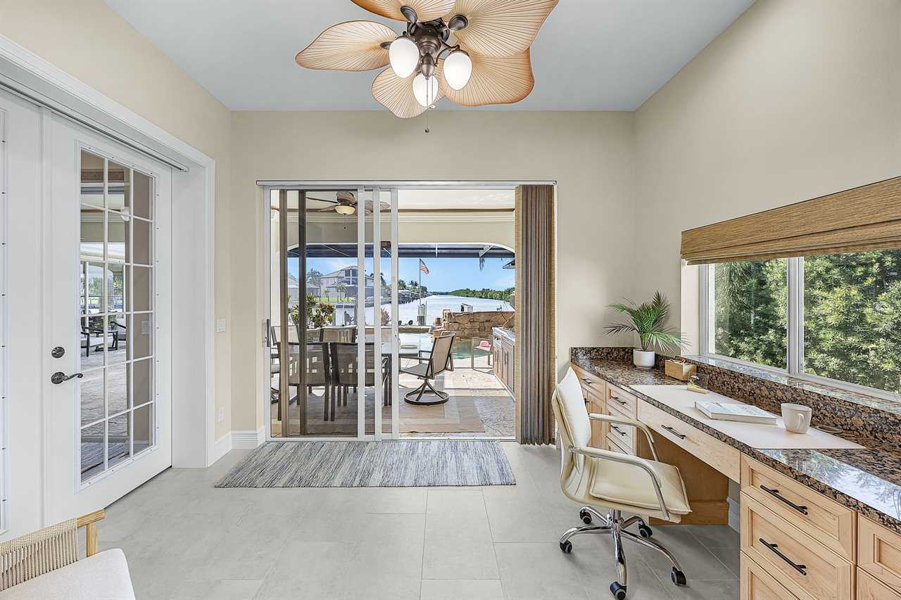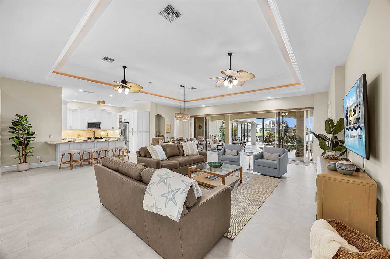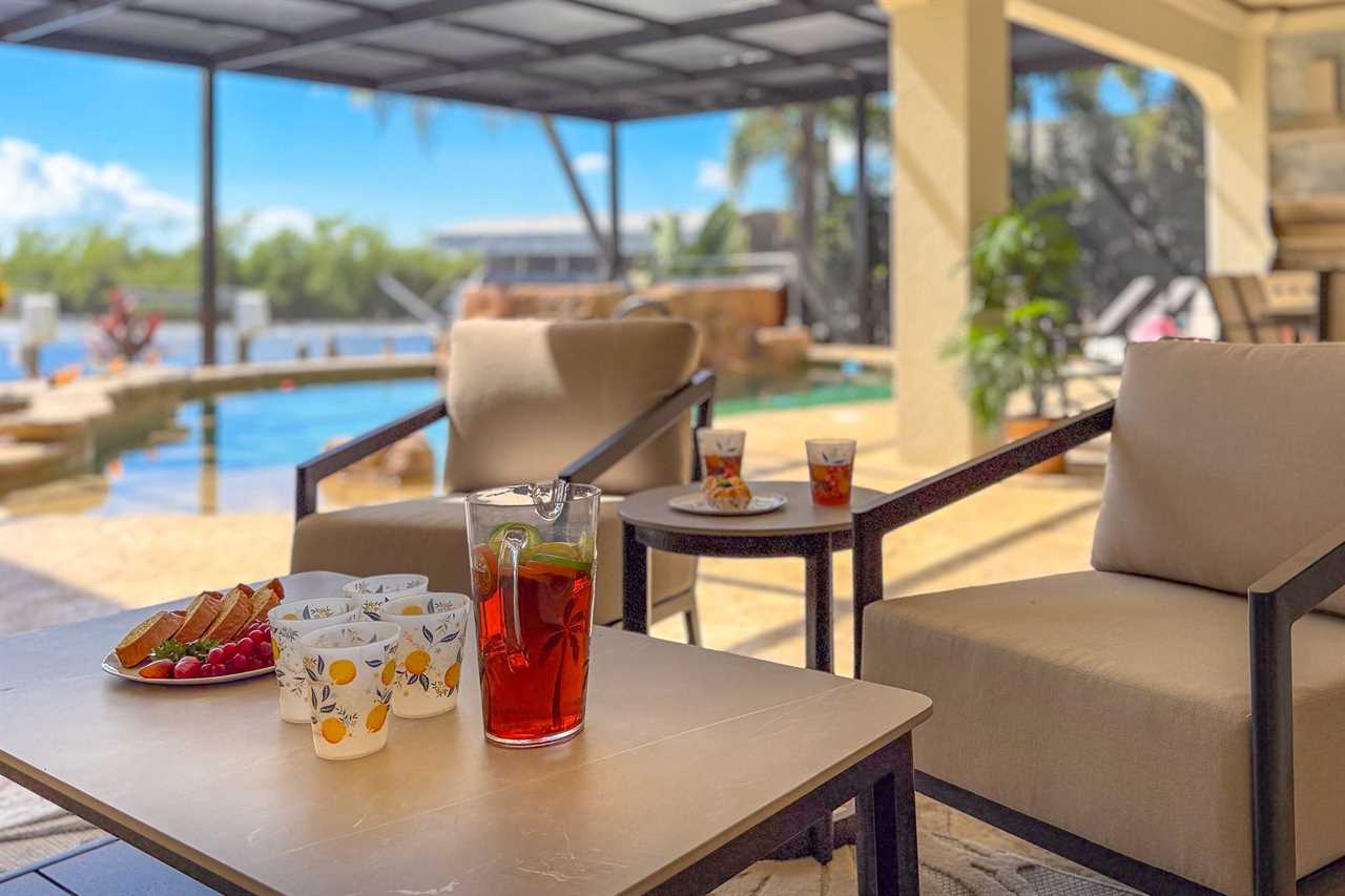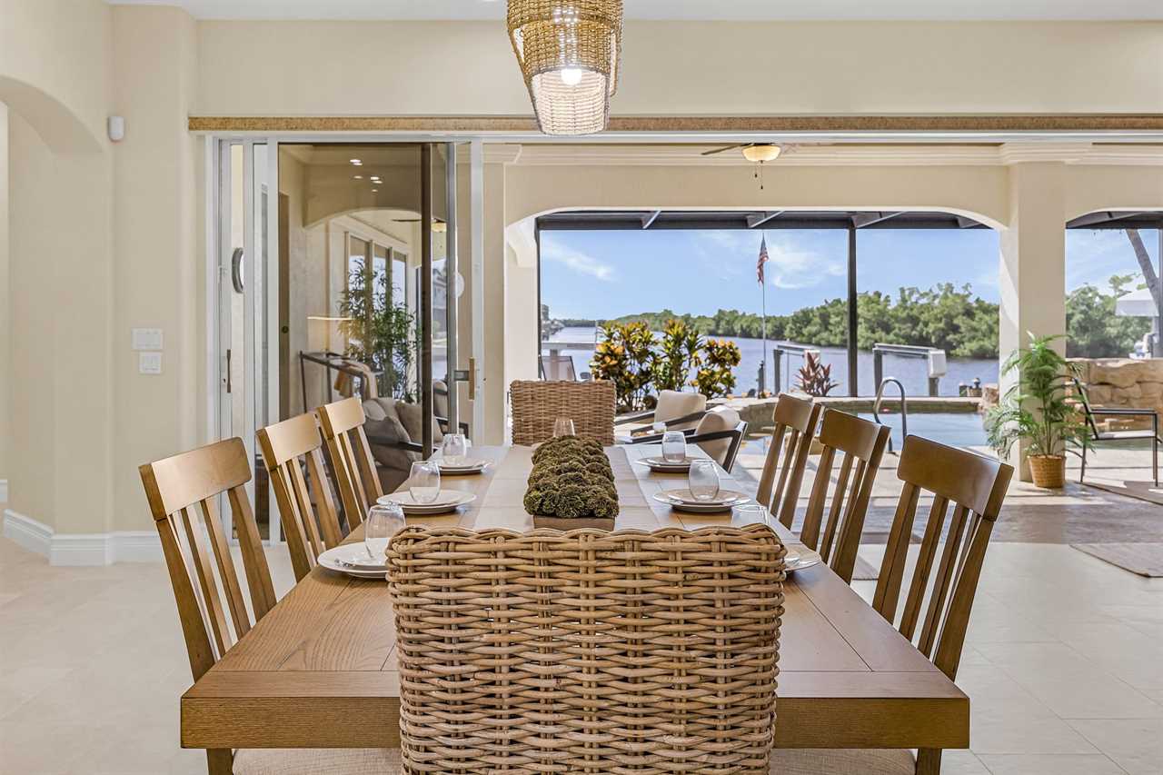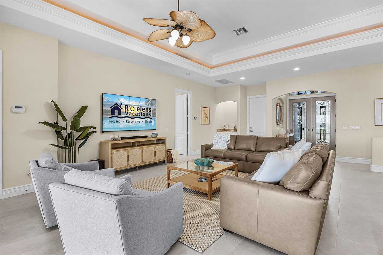 Coral Horizon Villa Where Luxury Meets the Horizon Welcome to Coral Horizon Villa, your ultimate Cape Coral escape where sunshine, style, and serenity come together. Designed for family gatherings and unforgettable getaways, this stunning home offers the perfect blend of comfort and waterfront adventure. From sunrise coffee on the lanai to sunset swims in the private pool, every moment here feels like a dream. Here's what makes this home so special: Bedding Arrangement: 5 Bedrooms: Master Suite 1: King-size bed, Smart TV, direct lanai access, ensuite bathroom Master Suite 2: King-size bed, Smart TV, ensuite bathroom, ensuite office with direct lanai access Guest Bedroom 1: Queen-size bed, Smart TV Guest Bedroom 2: Queen-size bed, Twin over Full bunkbeds Guest Bedroom 3: Two XL Twin-size beds Top Features Sleeps 13 Heated Pool & Spa with Swim-Up Bar: Spend your days soaking up the Florida sunshine in the heated pool or unwind in the bubbling spa. The swim-up bar adds a fun resort-style touch, making it easy to sip cocktails without ever leaving the water. It's the ultimate spot for both relaxation and celebration. Expansive Lanai with Grill: The spacious screened lanai offers the perfect blend of shade and sun. Fire up the grill for a family barbecue, dine al fresco at the outdoor table, or relax in the lounge area as the evening breeze sets in. This is Florida living at its finest. Spacious Living Room: With soaring ceilings, abundant natural light, and plush seating, the living room is designed to bring everyone together. Enjoy movie nights on the Smart TV, gather for games, or simply stretch out and relax after a day of adventure. Game Room with Pool Table & Bar: Keep the good times rolling even when indoors. Challenge friends to a game of pool, mix up drinks at the bar, or enjoy laughter-filled evenings in this dedicated entertainment space. Perfect for both adults and kids, rain or shine. Gulf Access & Private Dock: Launch your boat or kayak right from the private dock and set off on a Gulf adventure. Whether you're fishing, cruising through Cape Coral's scenic canals, or heading out to the open water, the dock makes it easy to embrace waterfront living. Bikes Included: Discover Cape Coral at a slower pace with complimentary bikes. Cruise along palm-lined streets, explore nearby parks, or ride out to grab a coffee or ice cream. It's the perfect way to enjoy the laid-back lifestyle of this coastal town Nestled in one of Cape Coral's most desirable neighborhoods, Coral Horizon Villa places you close to marinas, dining, shopping, and the best local beaches. Whether you're planning a family vacation, a reunion, or simply a relaxing retreat, this home has everything you need to create lasting memories. Book your stay at Coral Horizon Villa today and experience the perfect blend of relaxation and adventure! Roelens Vacations is proud to partner with the city to promote recycling and make our community more sustainable and greener. Thank you for your cooperation and for being part of a more sustainable future! DISCLAIMERS: This home does not allow pets. This home has a minimum age requirement of 25 to book. Smoking is not allowed on the property.