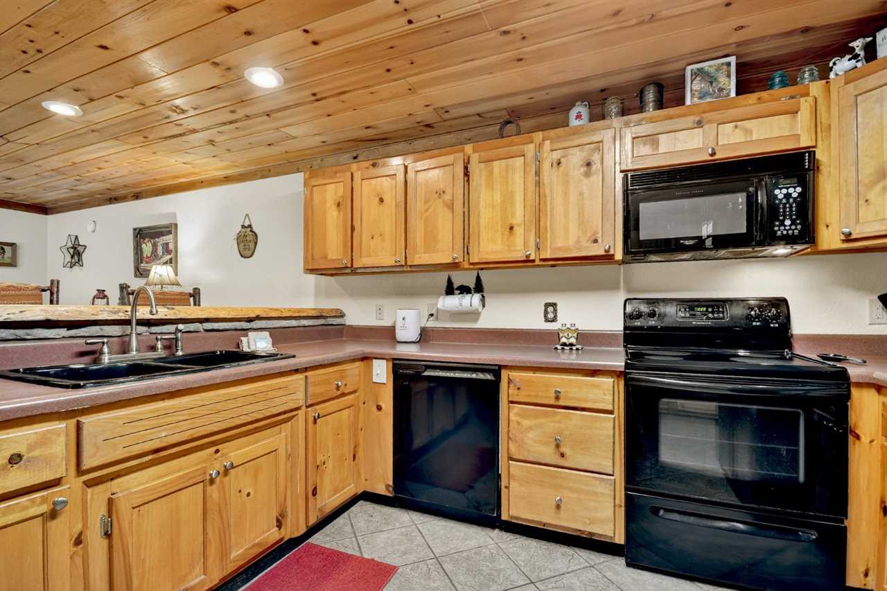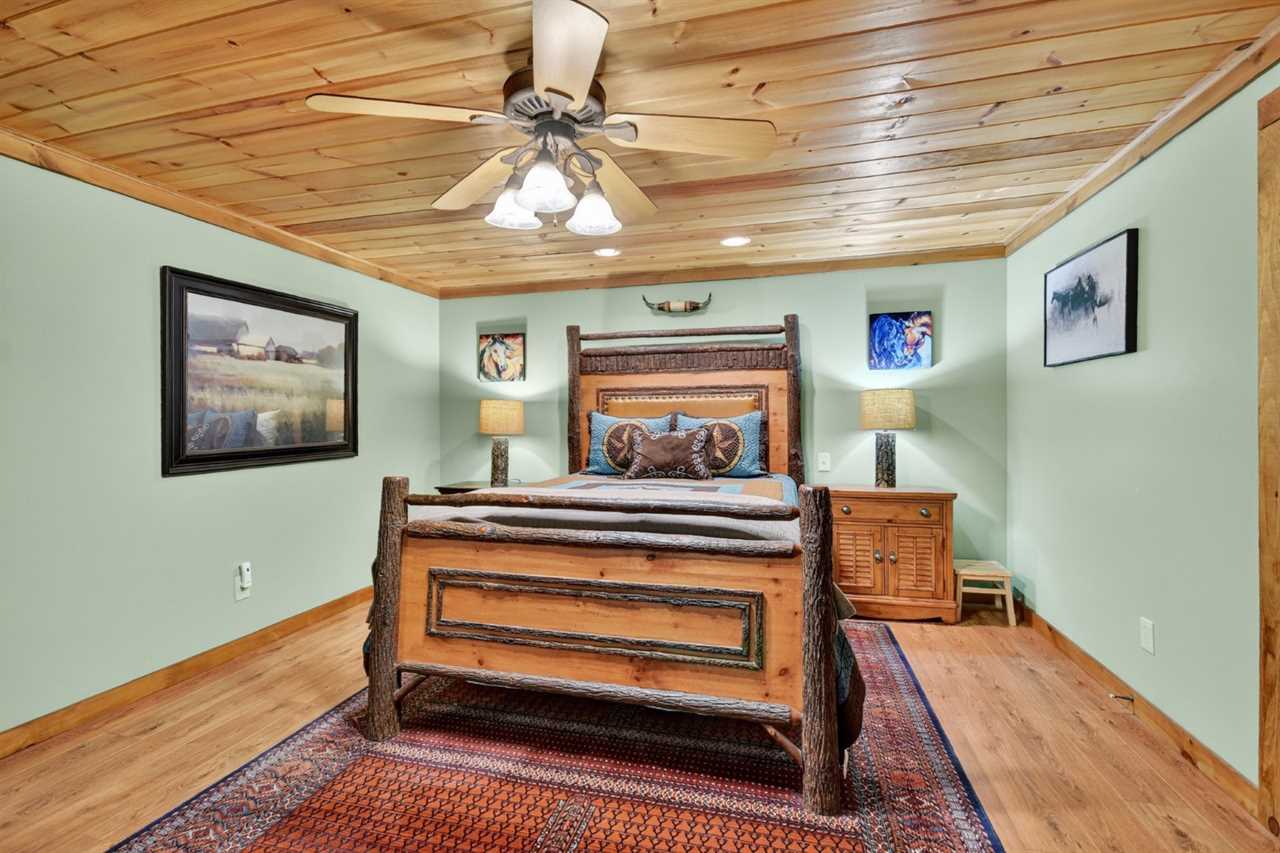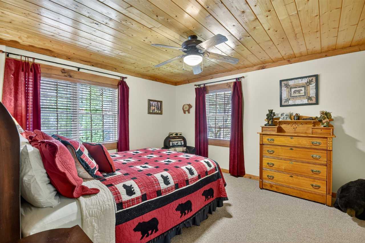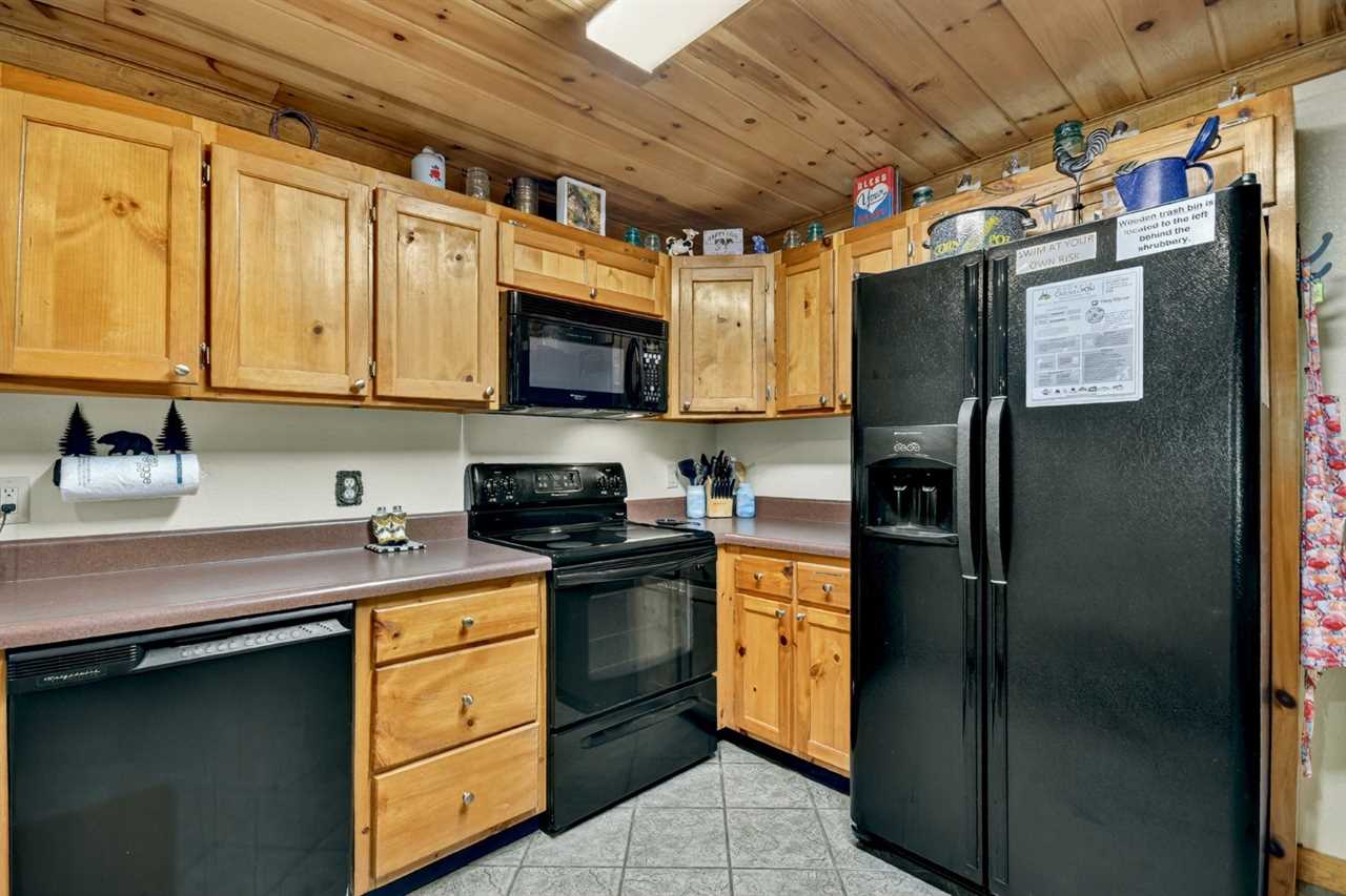 Inside, rustic charm meets comfort with a wood-burning fireplace, log-style rockers, and cozy spaces to enjoy. For more fun, walk to the bonus cabin and set up friendly tournaments in the game room — with poker, pool, darts, and board games. A big screen TV with a movie library, a fully equipped kitchen with a breakfast bar, and a dining table for family meals make the main cabin perfect for togetherness. The screened porch and private deck off the primary suite give you even more options to unwind.