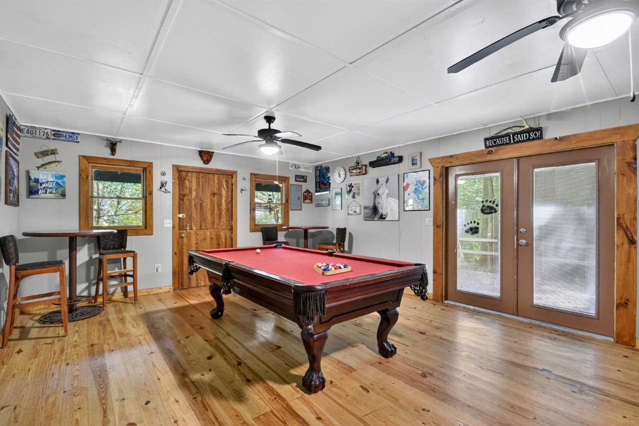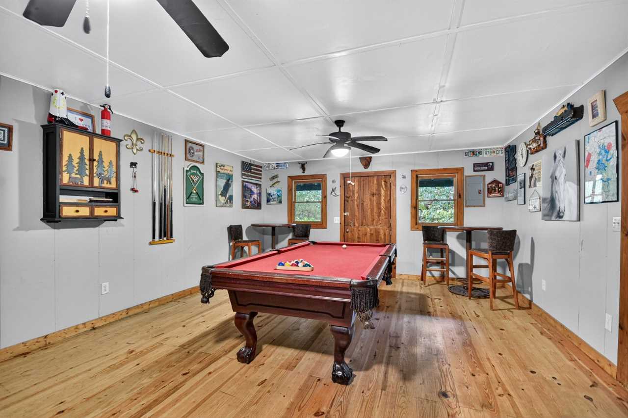 • Guests must walk outside to reach the bonus cabin with the rec room and side deck overlooking the creek; keep in mind Wi-Fi does not cover this area of the property.
