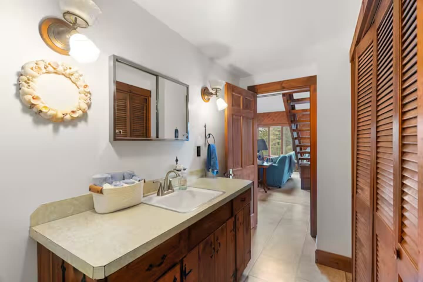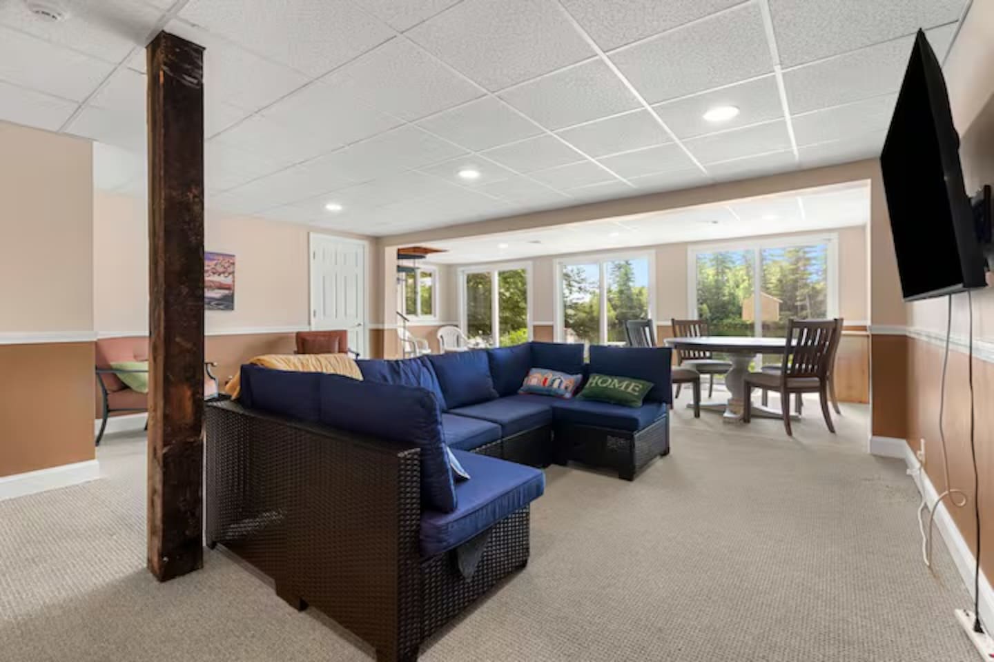 This architectural masterpiece boasts an open-concept design with soaring vaulted ceilings in the grand living room, where natural light pours in, framing panoramic lake vistas. The main floor features two luxurious queen bedrooms, while upstairs, a private balcony suite offers a tranquil retreat. A playful bunk room delights younger guests, and a twin bedroom ensures everyone finds their perfect haven. The walkout basement’s media room, a haven for movie nights or lively game sessions, ensures endless entertainment for all ages.