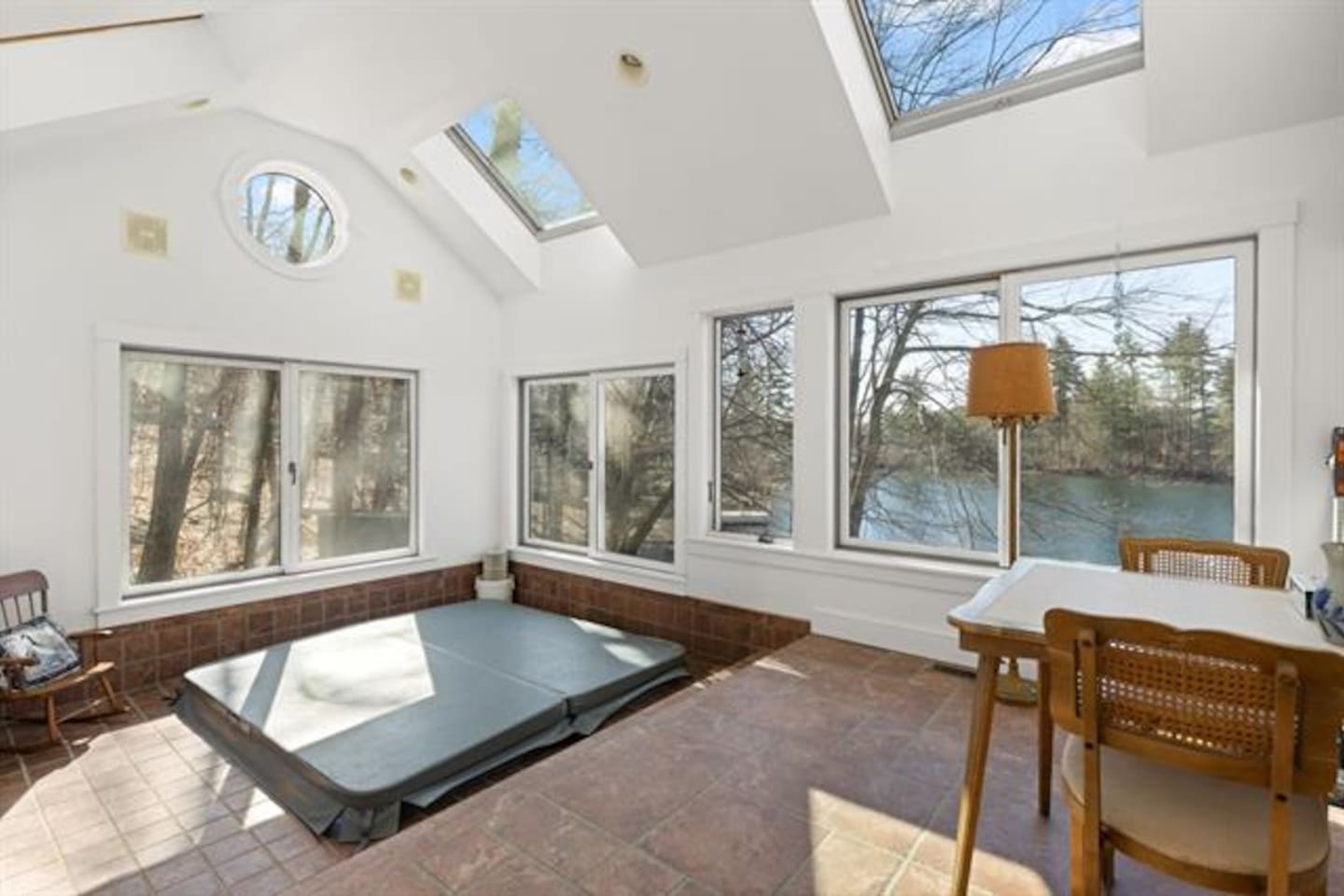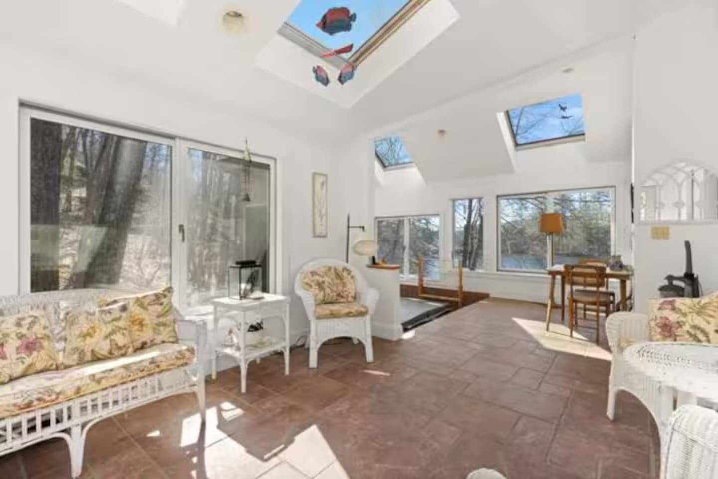 Step onto your private, kid-friendly sandy beach, where gentle waves beckon for swimming, kayaking, or paddleboarding. Launch from the private dock, unwind in the shaded gazebo with a refreshing drink, or savor al fresco dining on the expansive deck, complete with a premium grill. The year-round indoor hot tub, seating six, offers serene lake views, while the sun-drenched sunroom provides a cozy nook for morning coffee or evening cocktails.