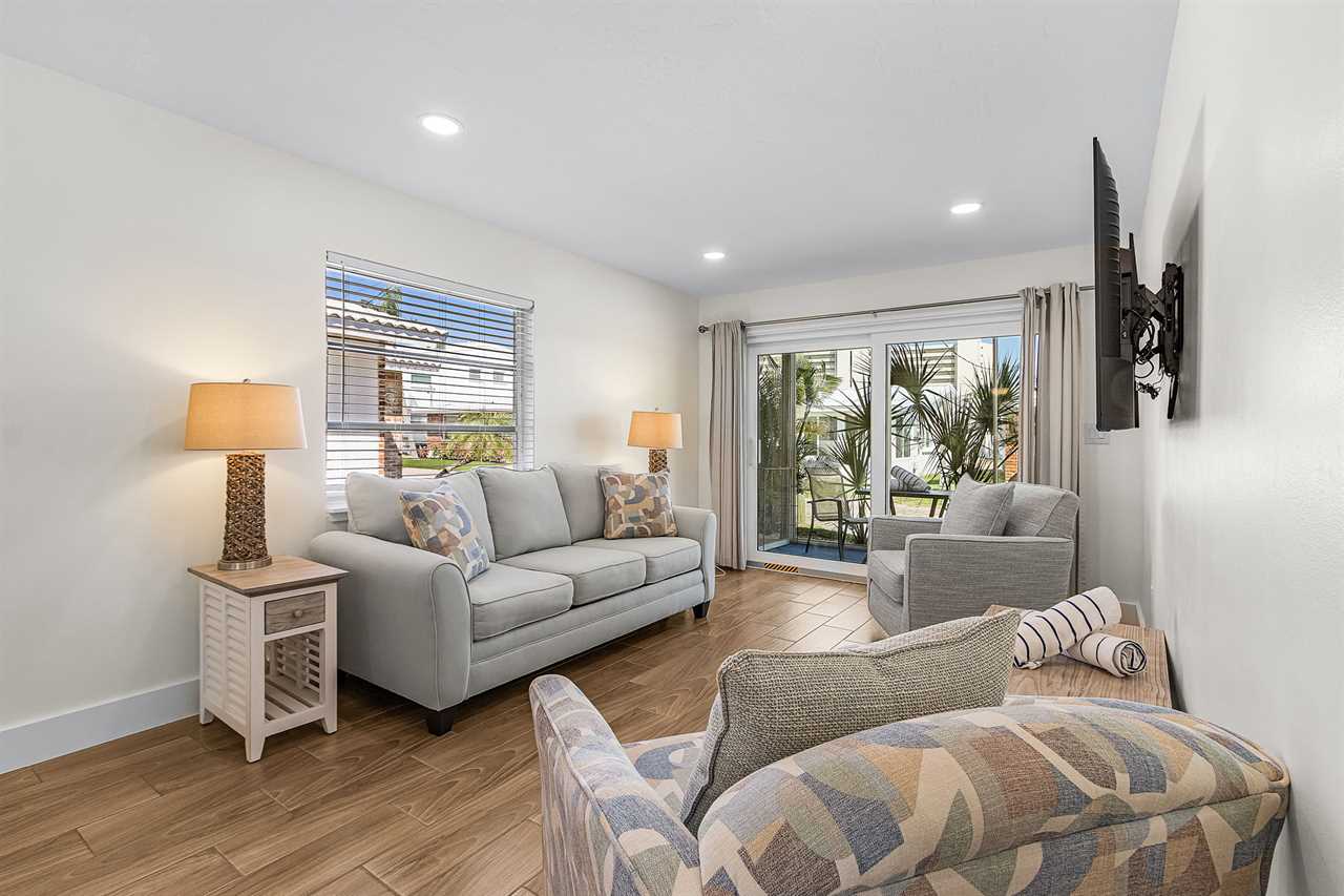 Front Patio/Sunroom (Aloha Kai #34) / Front Screened Porch and Back Patio (Aloha Kai #37): Unwind with morning coffee in #34's bright sunroom or enjoy #37's screened porch and back patio for balmy evening retreats.