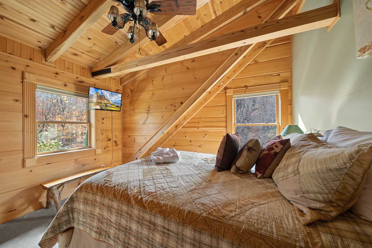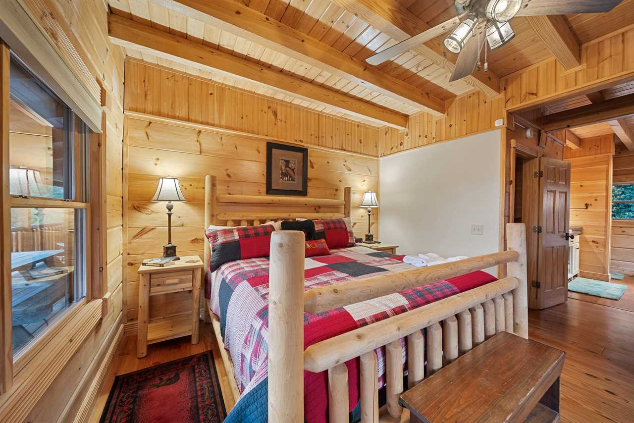 - Main-level queen bedroom: Bright and comfortable with a TV, sharing access to the upper level full bathroom.