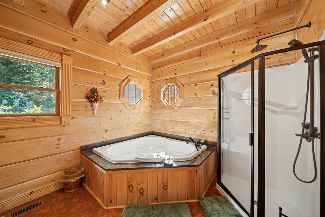- Main-level master suite: King bed, smart TV, and private ensuite with double vanities, step-in shower, and jetted soaking tub.