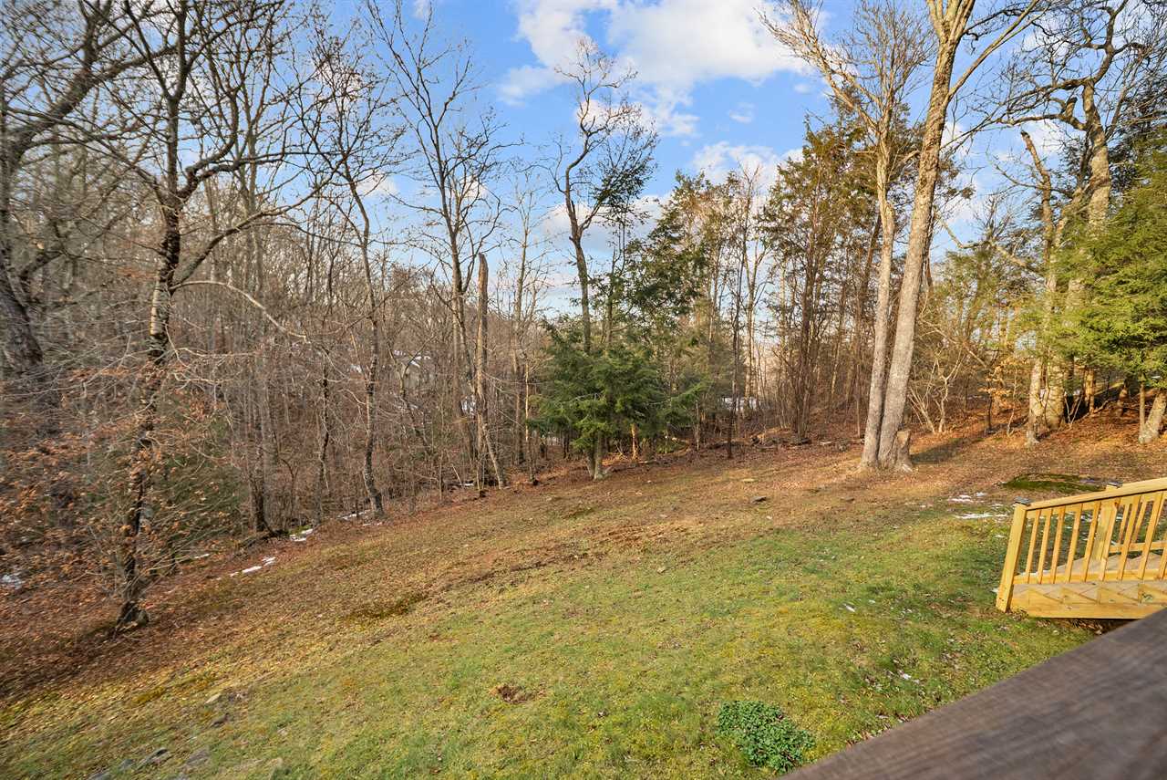 The bright, modern kitchen boasts stainless steel appliances, quartz countertops, and a large island perfect for meal prep, flowing seamlessly into the dining area. Step outside from the dining room to the covered back deck and enjoy your morning coffee or an evening meal at the picnic table while taking in the peaceful wooded scenery. The deck also includes a gas grill for easy outdoor dining.