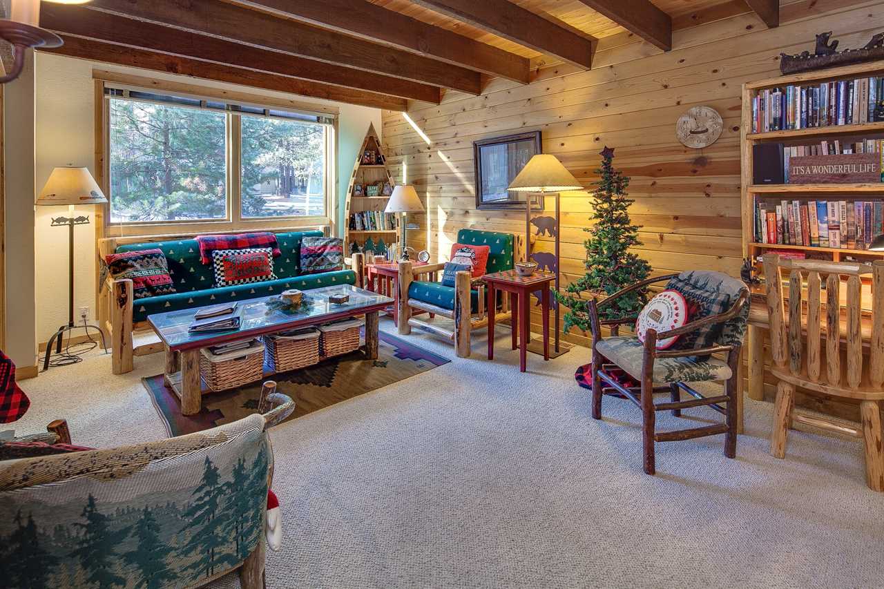 - Rustic cabin-style living space