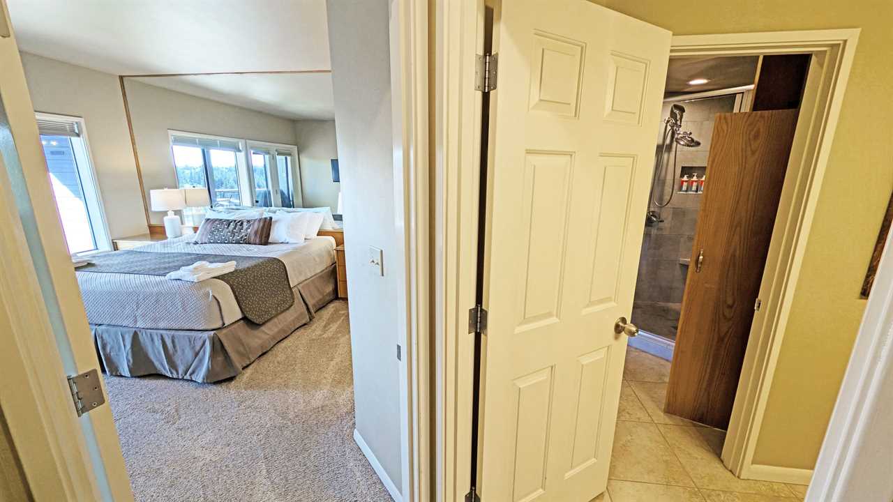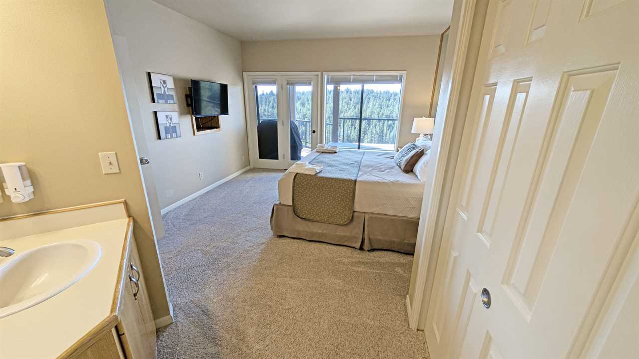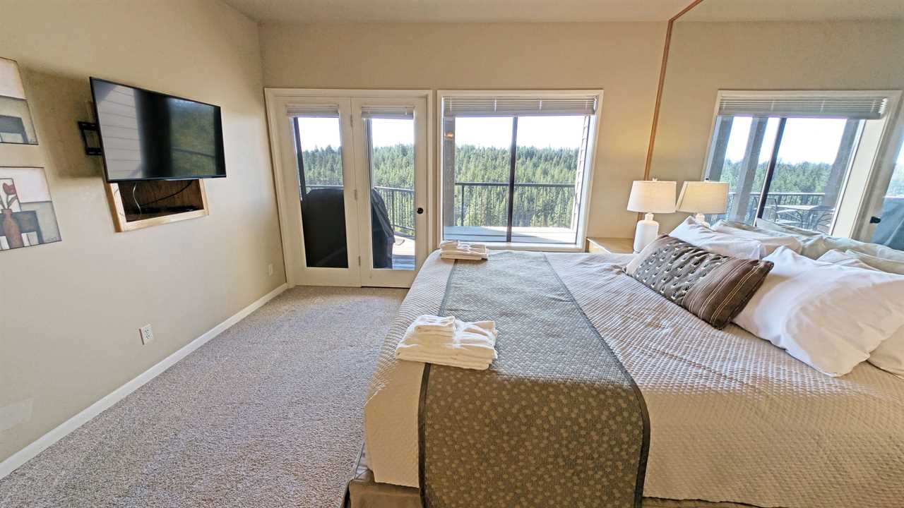 - Main Bedroom: King Bed, Deck Access, Flatscreen TV with Cable