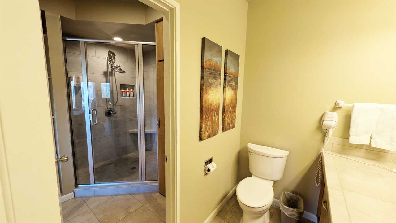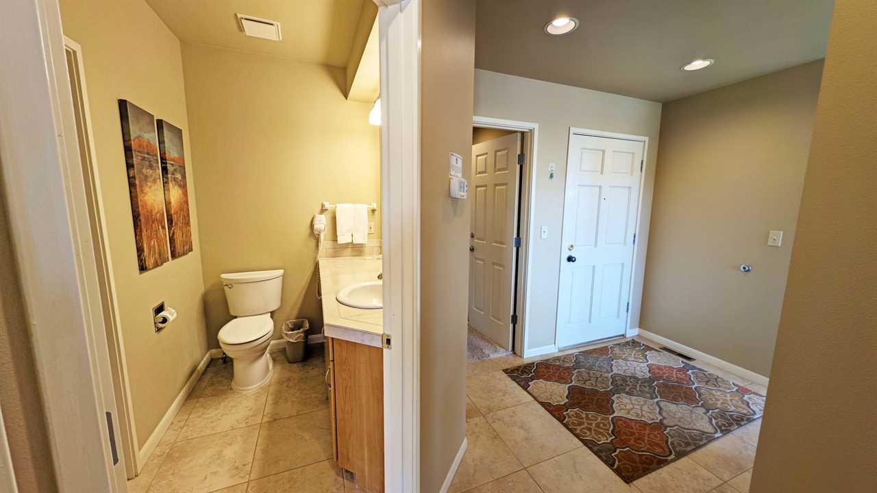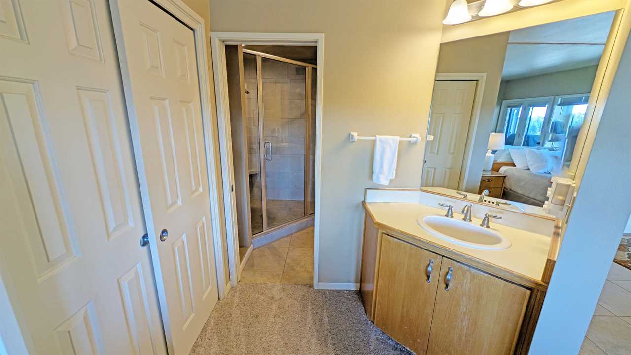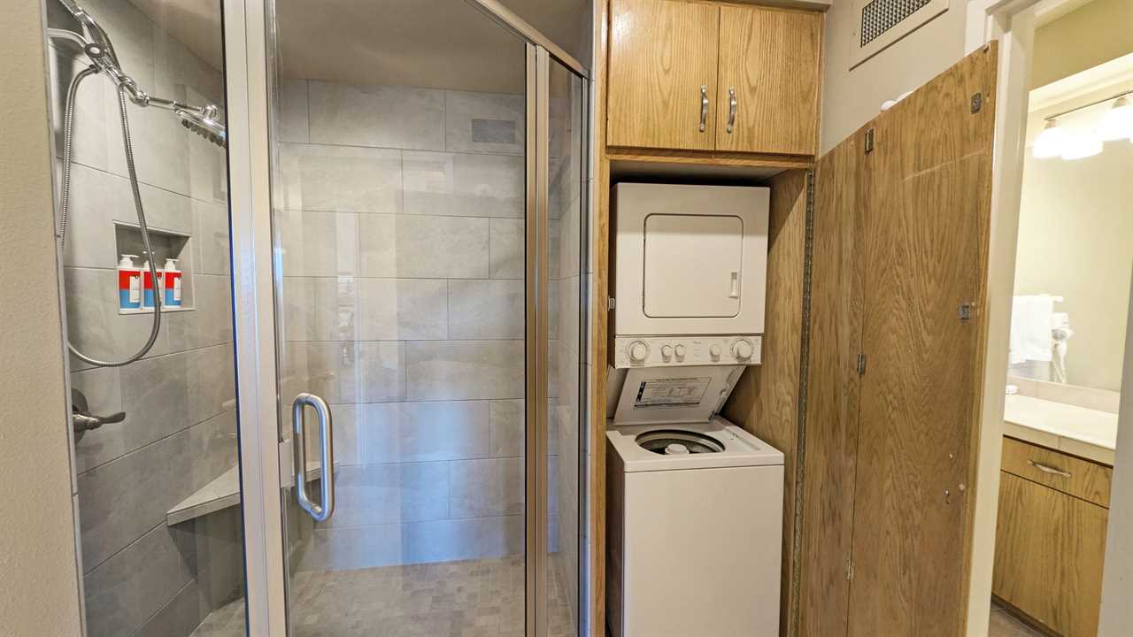 - Shower/Laundry with privacy doors connecting to bedroom and vanity area