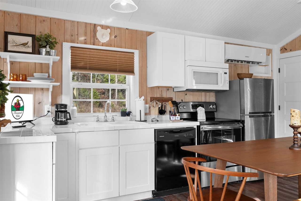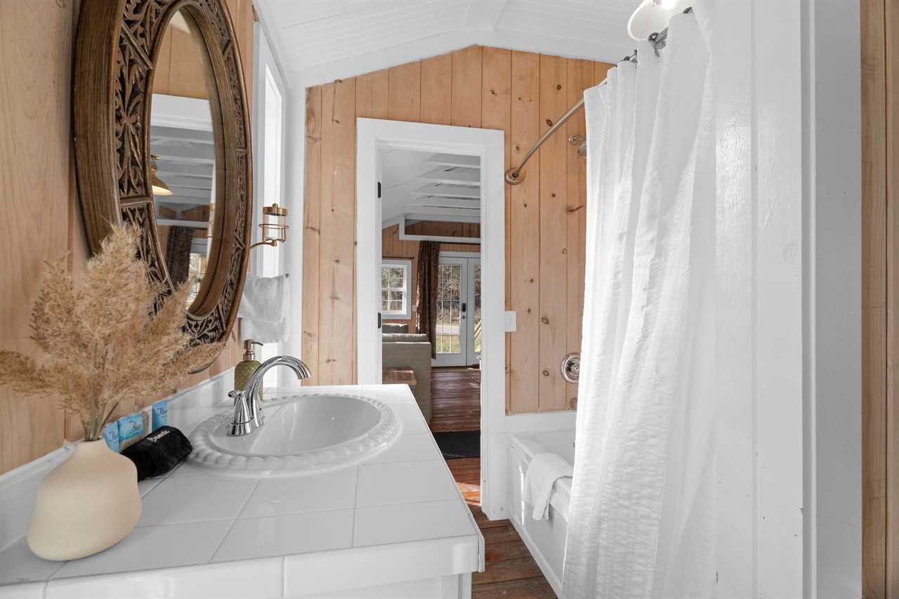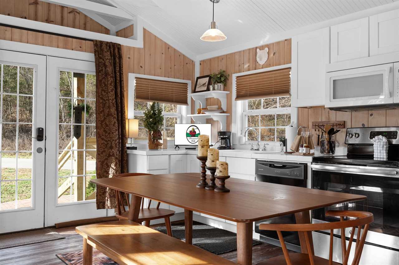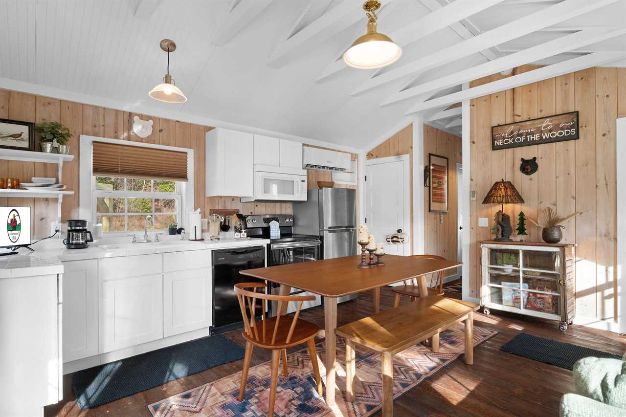 This quaint cabin offers the perfect blend of rustic charm and thoughtful comfort. Soft wood interiors, warm lighting, and an easy open layout create a welcoming atmosphere for couples, solo travelers, or small families seeking rest and reconnection. The creek runs directly behind the cabin — close enough to hear from the deck — adding an unforgettable sense of calm and closeness to nature.