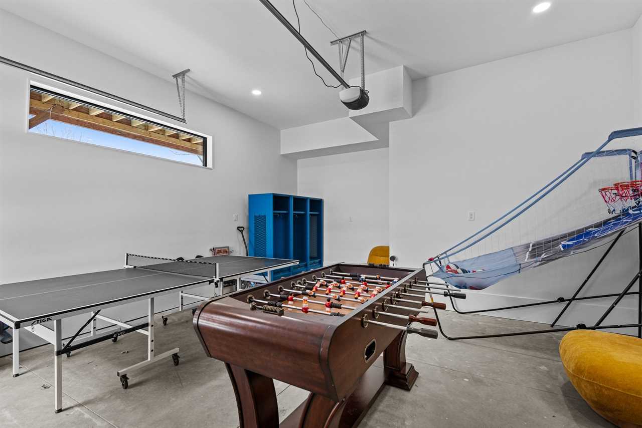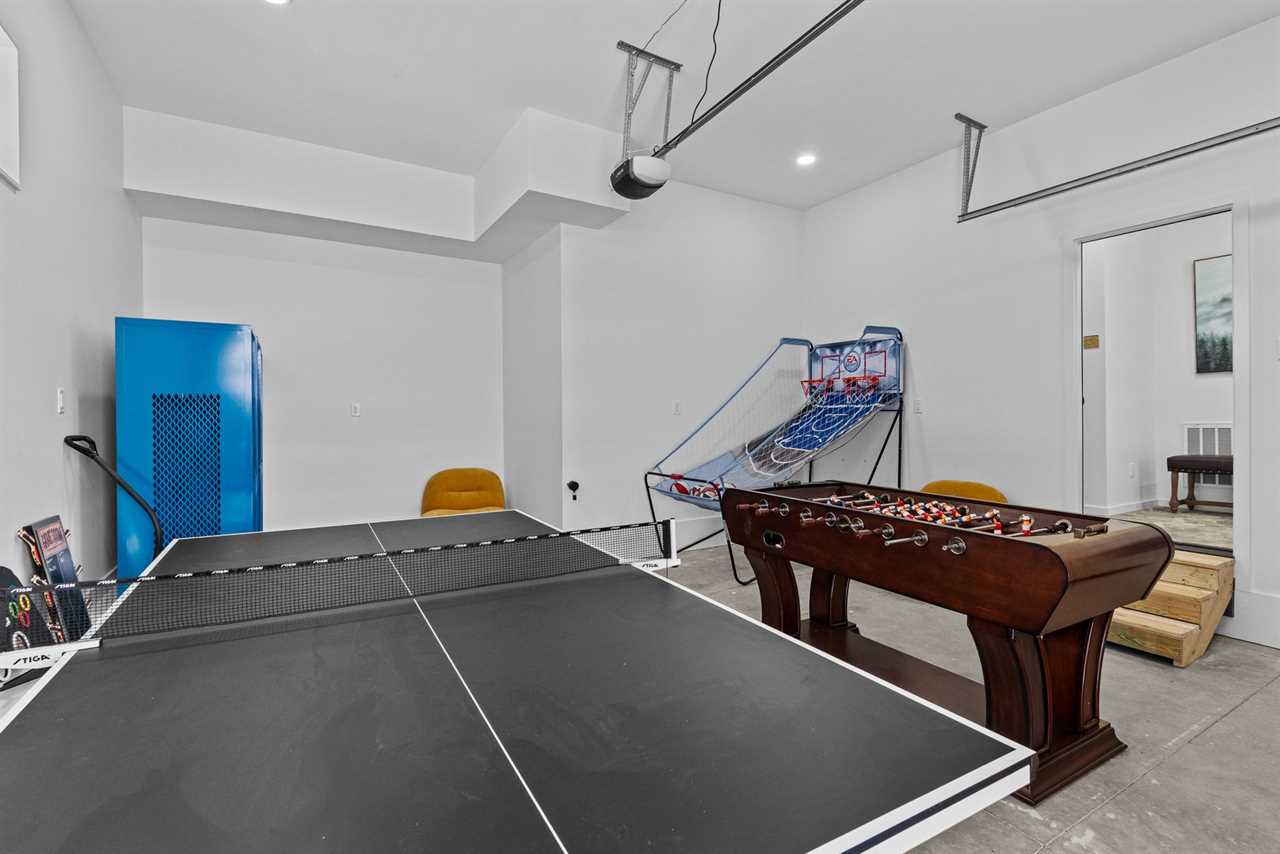 What was once the garage has been reimagined into the ultimate game room—complete with a ping-pong table, foosball, basketball shootout, and a wall-mounted retro arcade console—ensuring hours of entertainment for guests of all ages. What was once the garage has been reimagined into the ultimate game room—packed with ping-pong, foosball, basketball shootout, and a retro arcade console. You'll also find athletic lockers ready to stash skis and gear after a big day on the slopes.