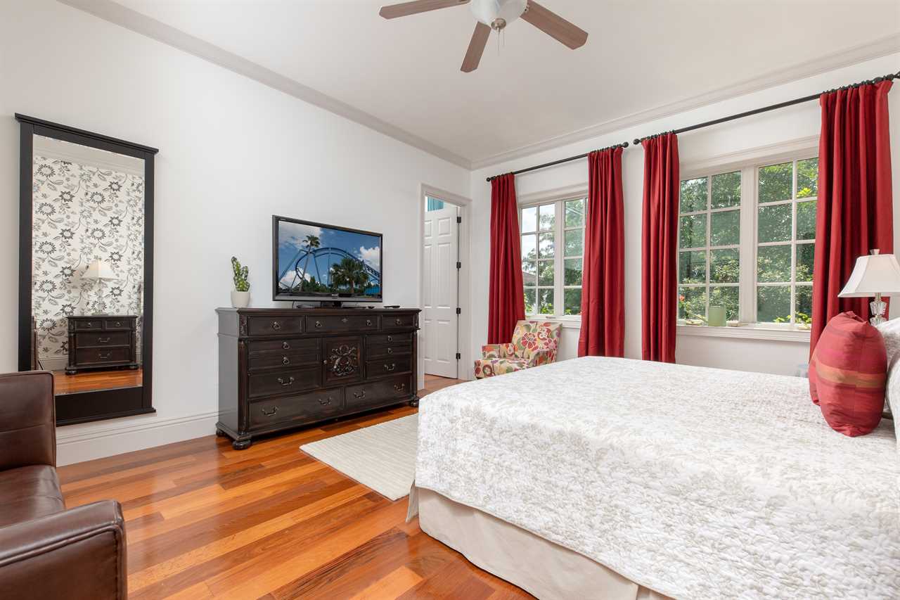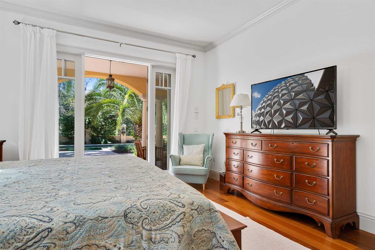 After an active day visiting Disneyworld just a few miles away and other attractions that Reunion and Orlando have to offer, you deserve a good night's sleep. A spacious master bedroom downstairs features French doors that in a few steps lead you to a relaxing evening swim or an invigorating morning dip. You will be ready to enjoy another day in the sun. An en-suite bathroom with a spacious marble shower and a walk-in closet finish the downstairs master suite.