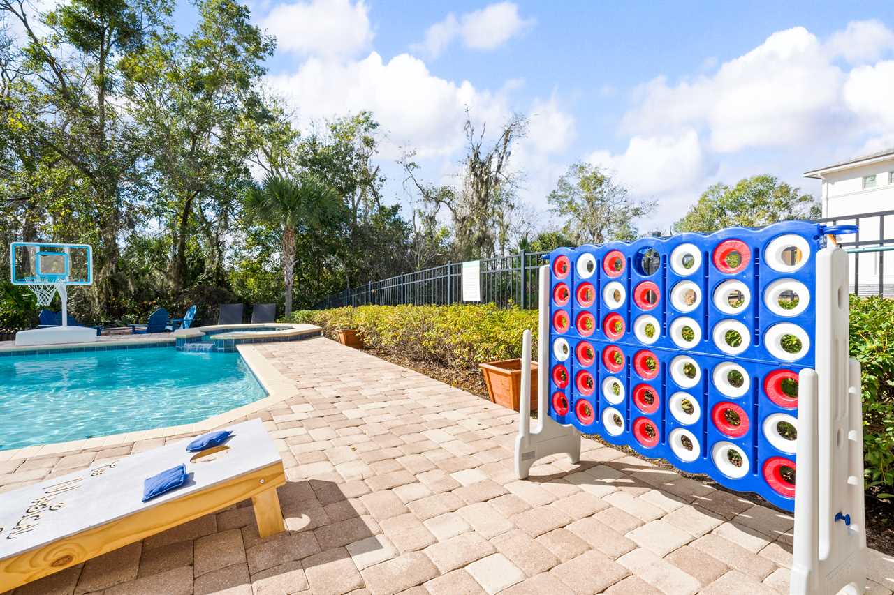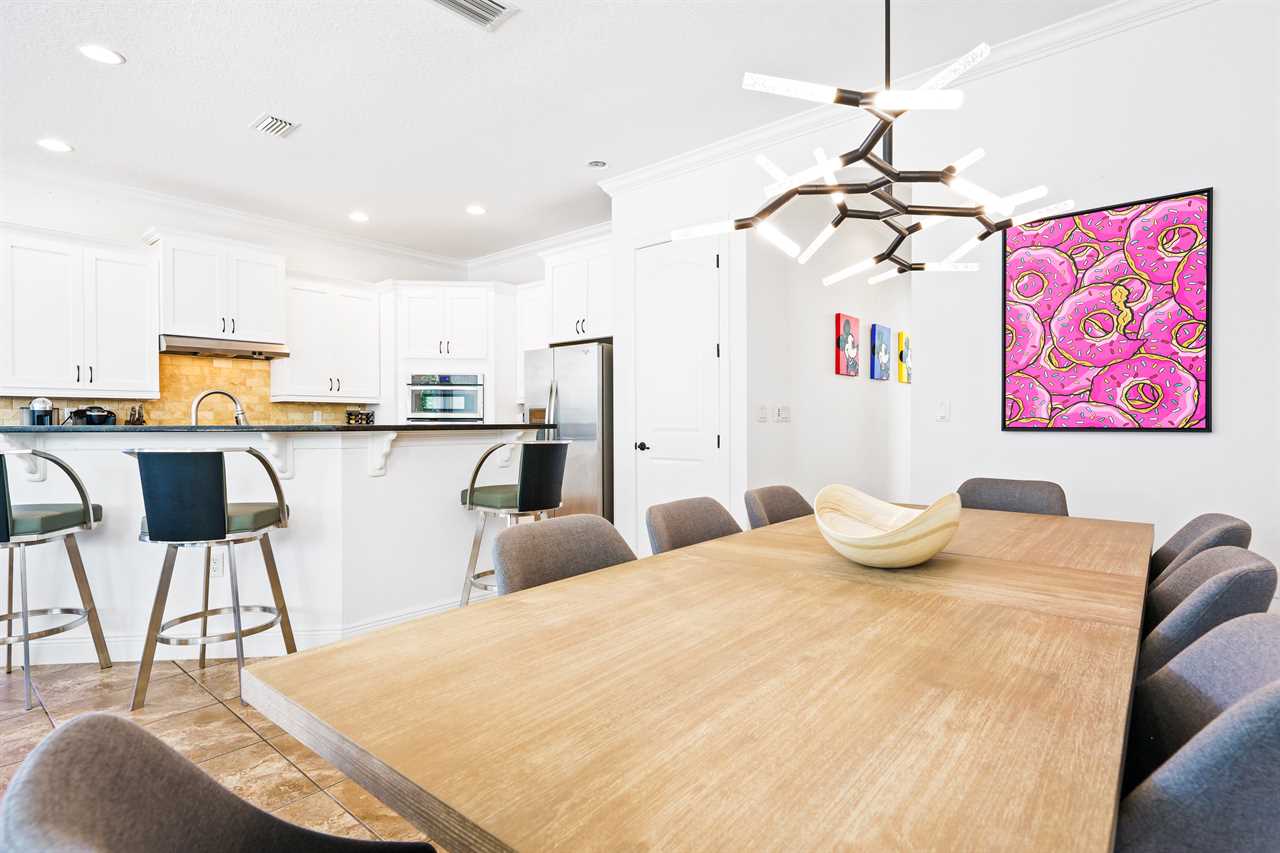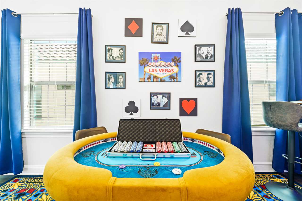 The Magical Estate is a 5 bedroom (all en-suite), 3,200 sq foot treasure that features countless activities for all ages! The private pool/spa and spacious pool deck include plenty of lounge chairs and countless games and activities. This includes pool basketball, cornhole, and larger-than-life ConnectFour! The outdoor kitchen and oversized dining/seating include an outdoor TV, the on-site Las Vegas-themed casino, and a lounge for adults featuring poker and token-based slots. the state-of-the-art arcade and game room, the next-level wizard, and superhero-themed rooms including 3 different commercial playground quality slides, and an unparalleled pop art collection that fills the walls, are just a few of the features that set this home apart! There's even an on-site laundry room with brand-new machines for your convenience.