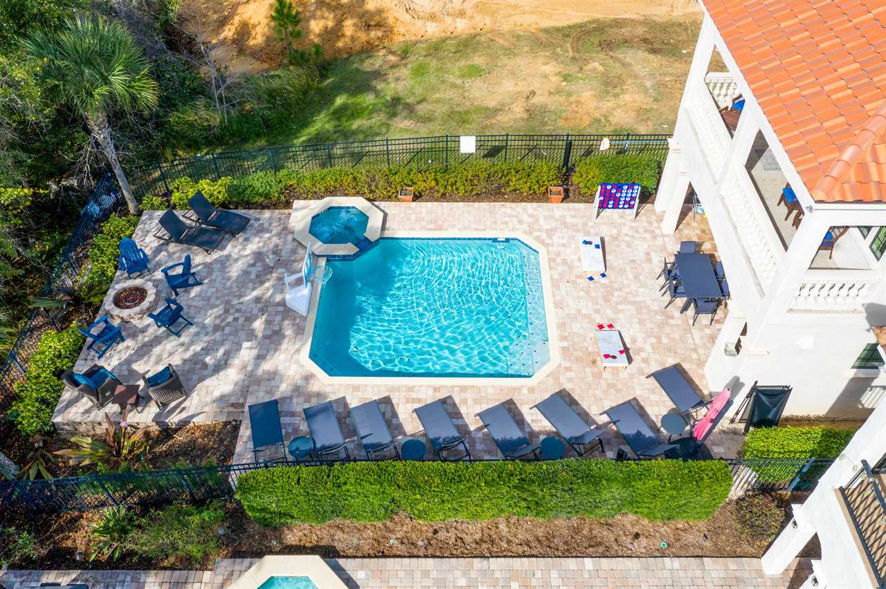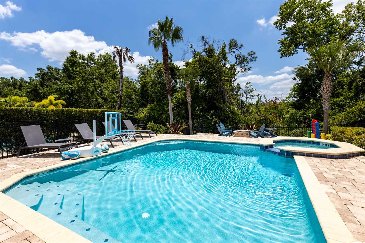 This home has an outdoor pool without a screen enclosure that is cleaned and serviced once a week. Please be aware that in-between the weekly clean all outdoor pools are susceptible to some minor debris such as mulch or leaves being blown into the pool. Especially during periods of heavy rain. A skimmer net is provided to remove any debris in between the weekly cleans.