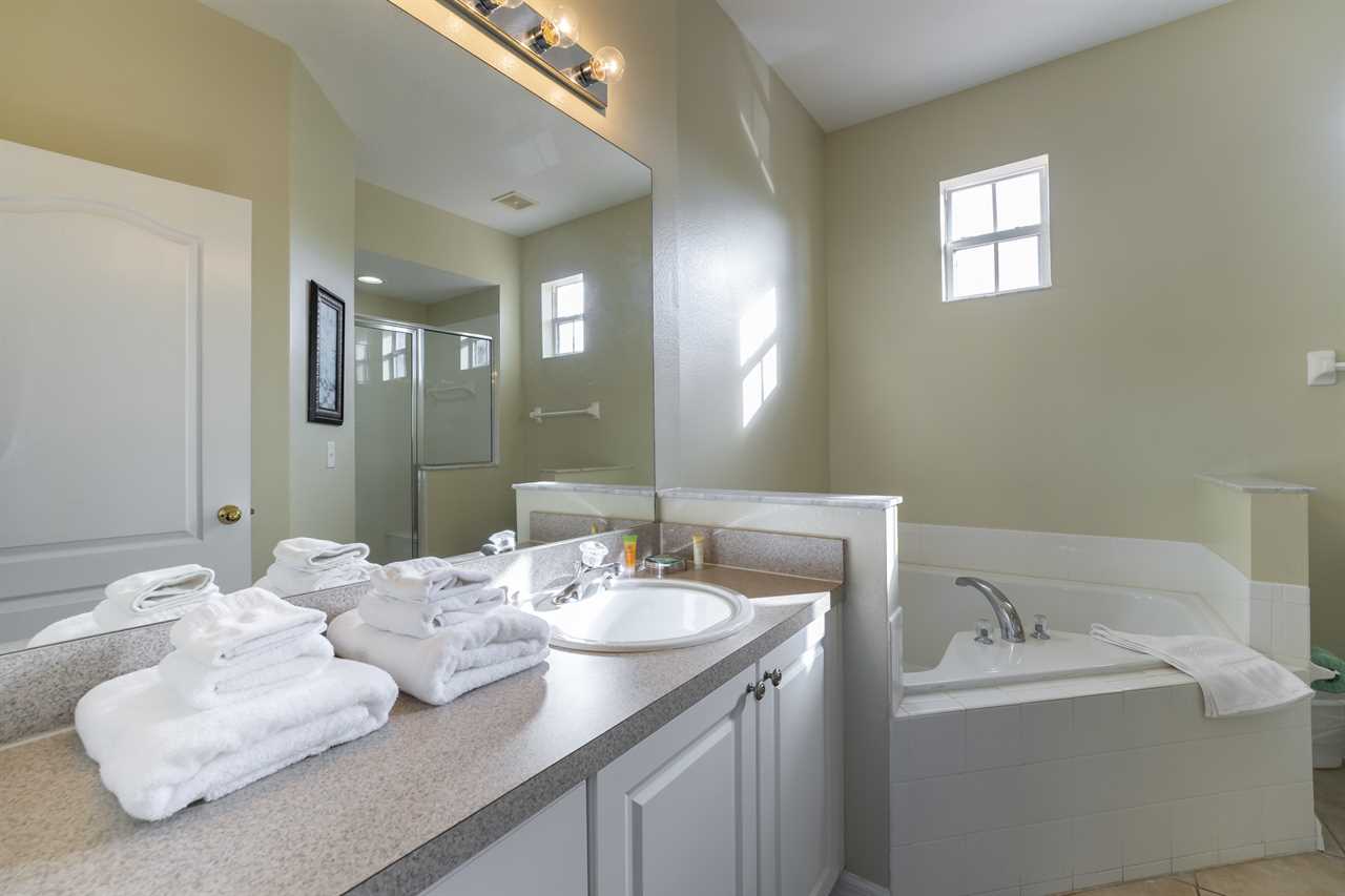Located in the secure, gated community of Tuscan Hills, this welcoming two-story villa features four comfortable bedrooms—including two private master suites—and three and a half bathrooms. With a private pool and spa, Roku-equipped smart TVs, and open, inviting living spaces, it's the ideal home base just minutes from Disney, local restaurants, and golf.