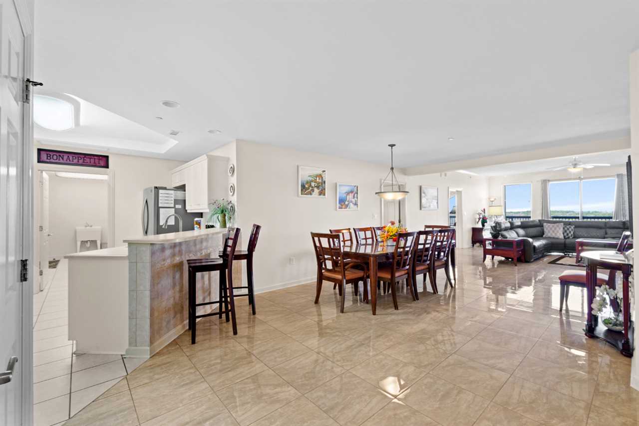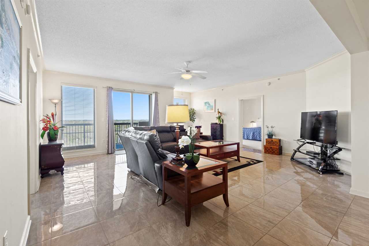 This expansive, open-floor plan features a fully equipped kitchen and a spacious living room that offers direct access to a wrap-around balcony. It's the perfect spot to unwind and take in the breathtaking views and vibrant sunsets after a day filled with fun and adventure. In addition to the dining room table, an extra four-person table is conveniently located in the living area. This provides added comfort and versatility -- perfect for family games, card games, or extra seating during larger gatherings. This layout ensures both relaxation and functionality in an inviting, open setting.
