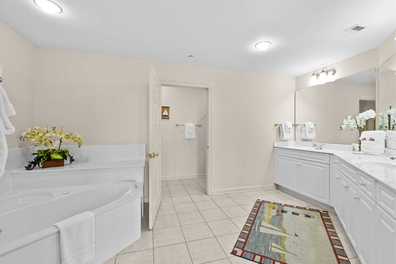 Additional amenities include a private balcony off the primary bedroom, a corner jetted whirlpool tub, and a walk-in shower in the ensuite bath. Bed and bath linens, free dedicated internet/Wi-Fi, free parking, and a variety of other thoughtful touches designed to enhance your stay are also included.