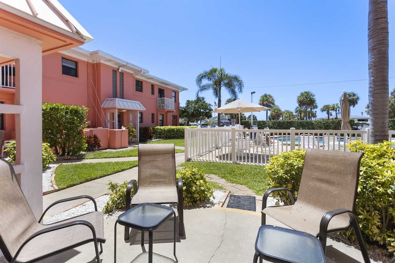 Step outside to a small private patio right by the pool β perfect for morning coffee or evening cocktails.