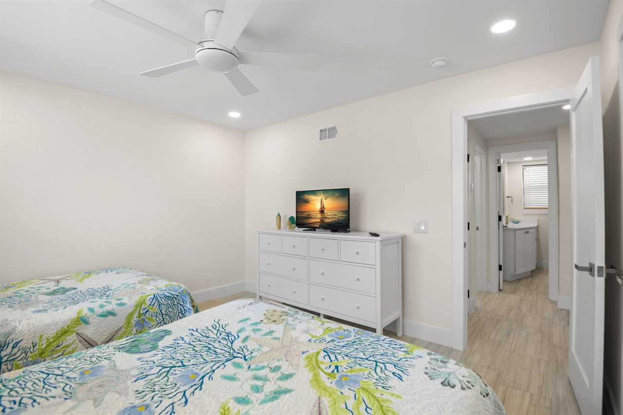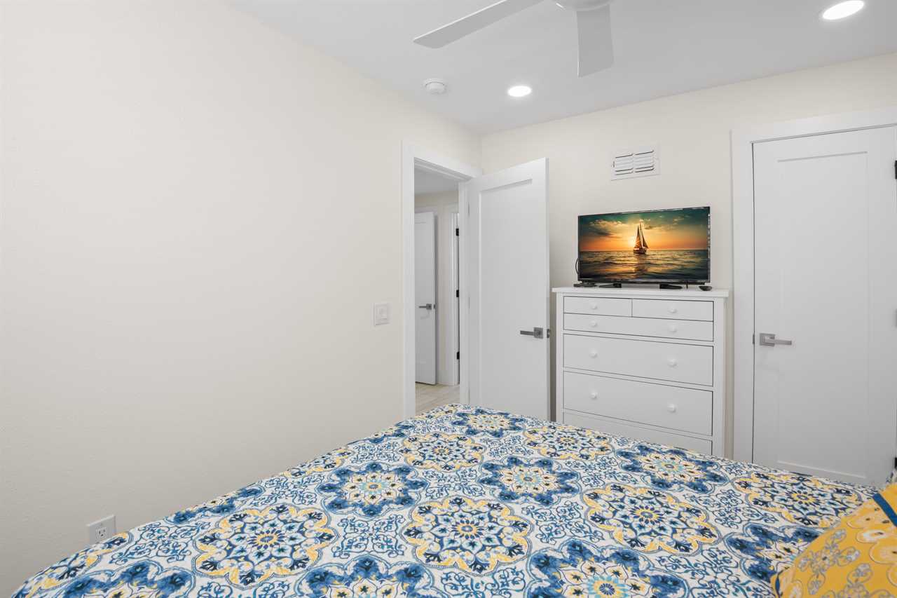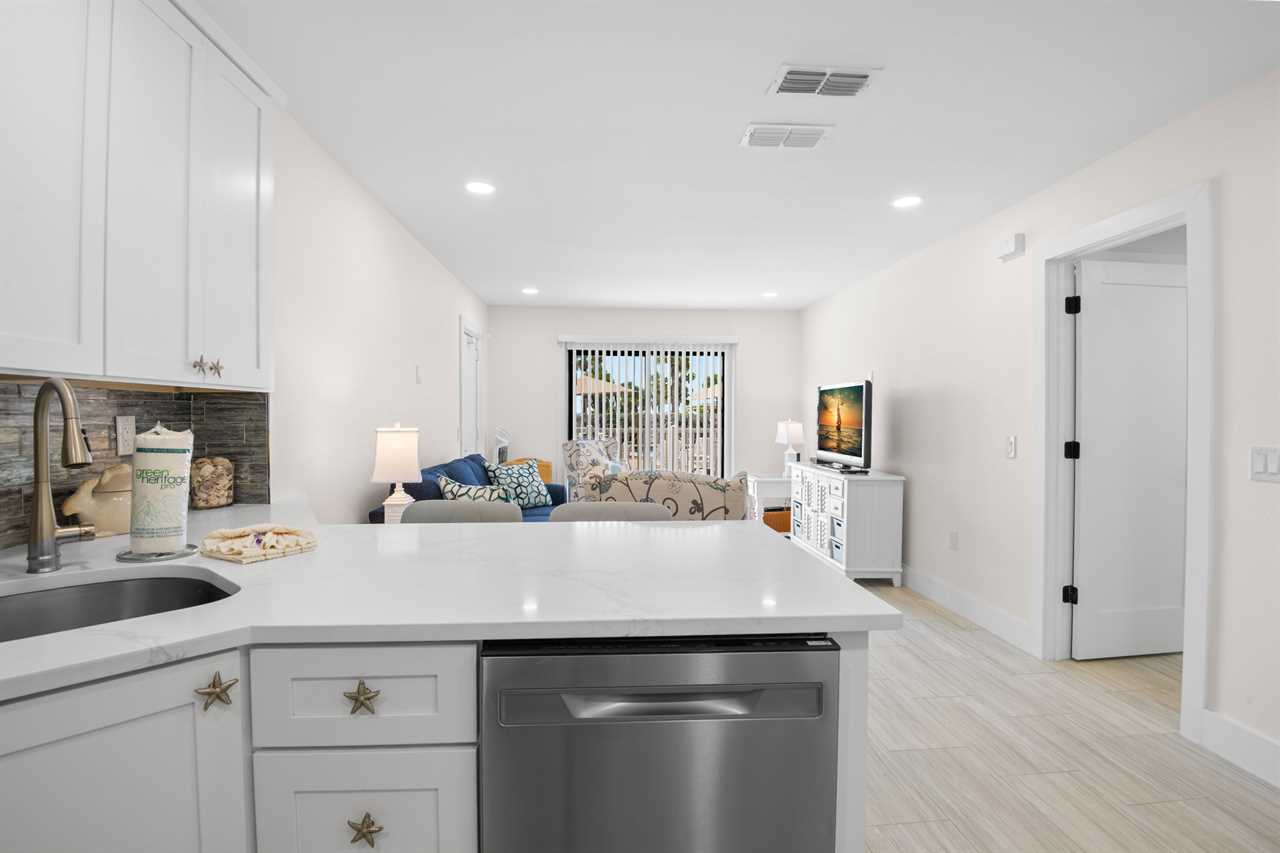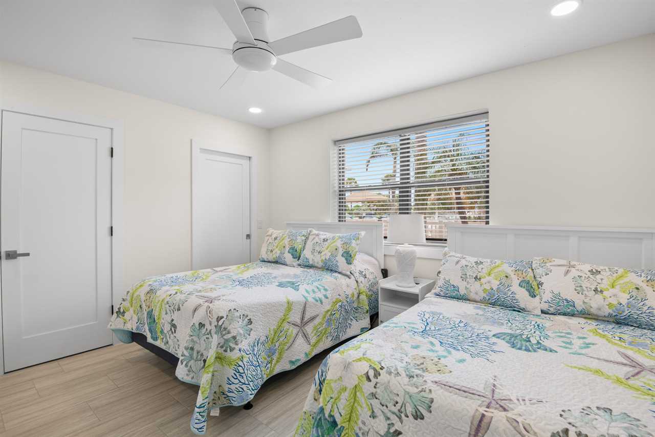 This ground-floor unit #1101 features a queen bed in the master bedroom, two full-sized beds in the second bedroom, and a sleeper sofa in the living room β sleeping up to six guests. With a full kitchen (stove, oven, refrigerator, microwave, dishwasher and all the cooking basics), dining and living areas, cable TV, complimentary Wi-Fi, and neatly updated dΓ©cor, you'll feel right at home. The recent renovation has refreshed the space with modern finishes and comfortable furnishings, giving the unit a bright, fresh, coastal vibe.