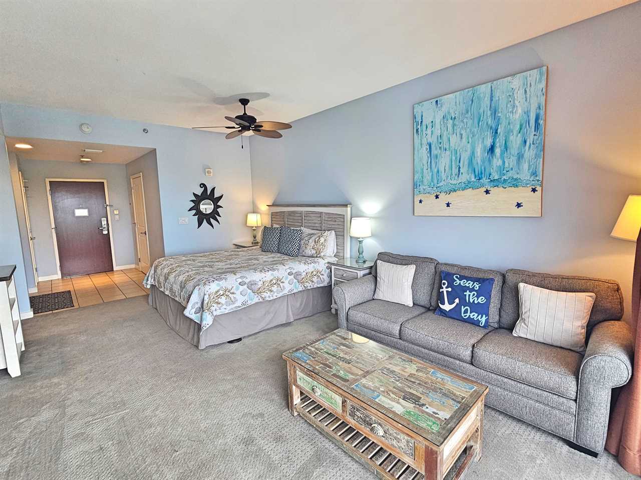 • Sleeping: King bed + sleeper sofa (sleeps 4, max 3 adults)
