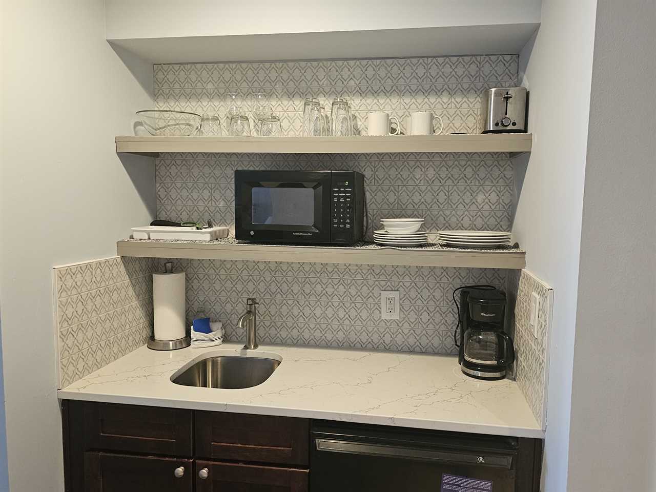 • Kitchenette: Microwave, mini-fridge, toaster, coffee maker