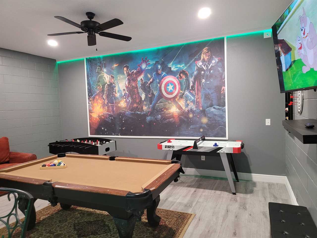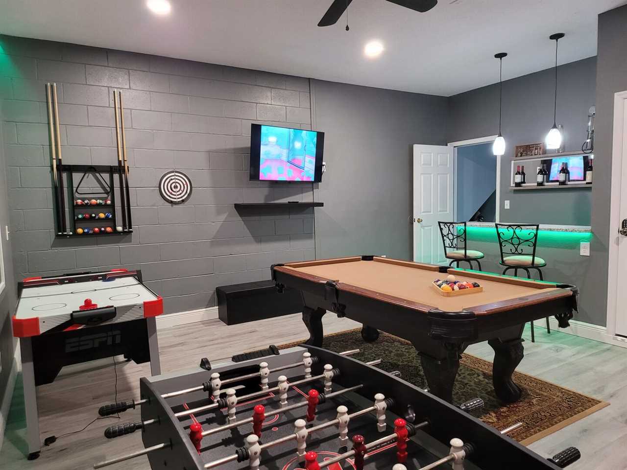 Kids and adults alike will LOVE the games rooms located in the garage featuring a pool table, air hockey, darts, mini bar, AC, and foosball table. A second games room is set up for moms and small children. Complimentary Wi-Fi is also included for hours of extra enjoyment. Smart TV through-out the house in just about every room including outside pool area.