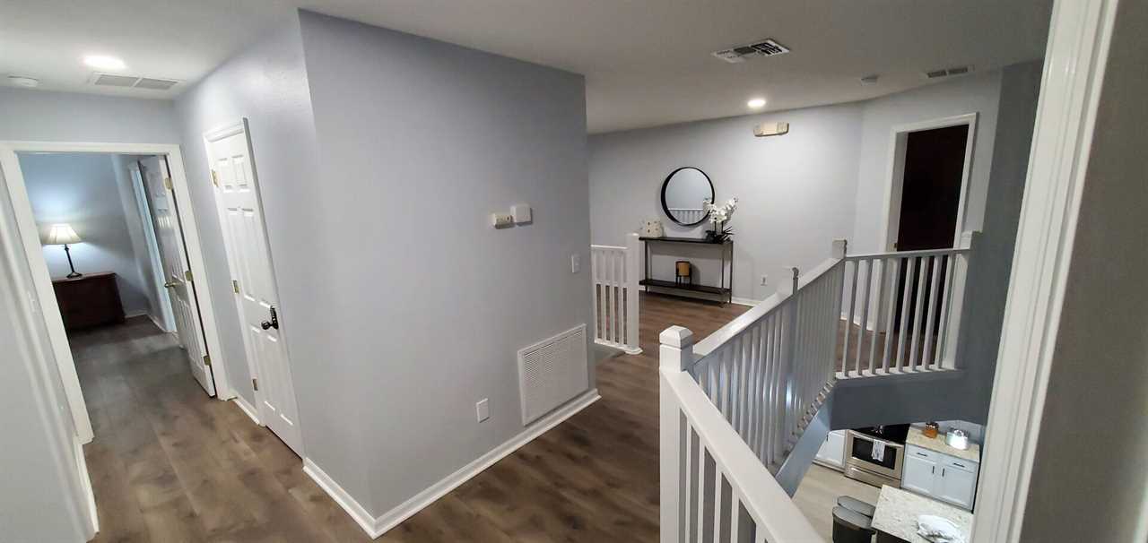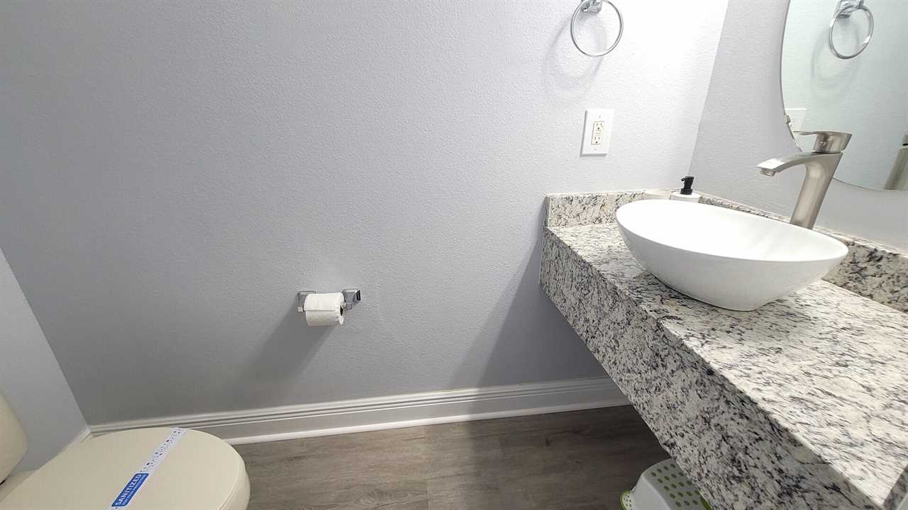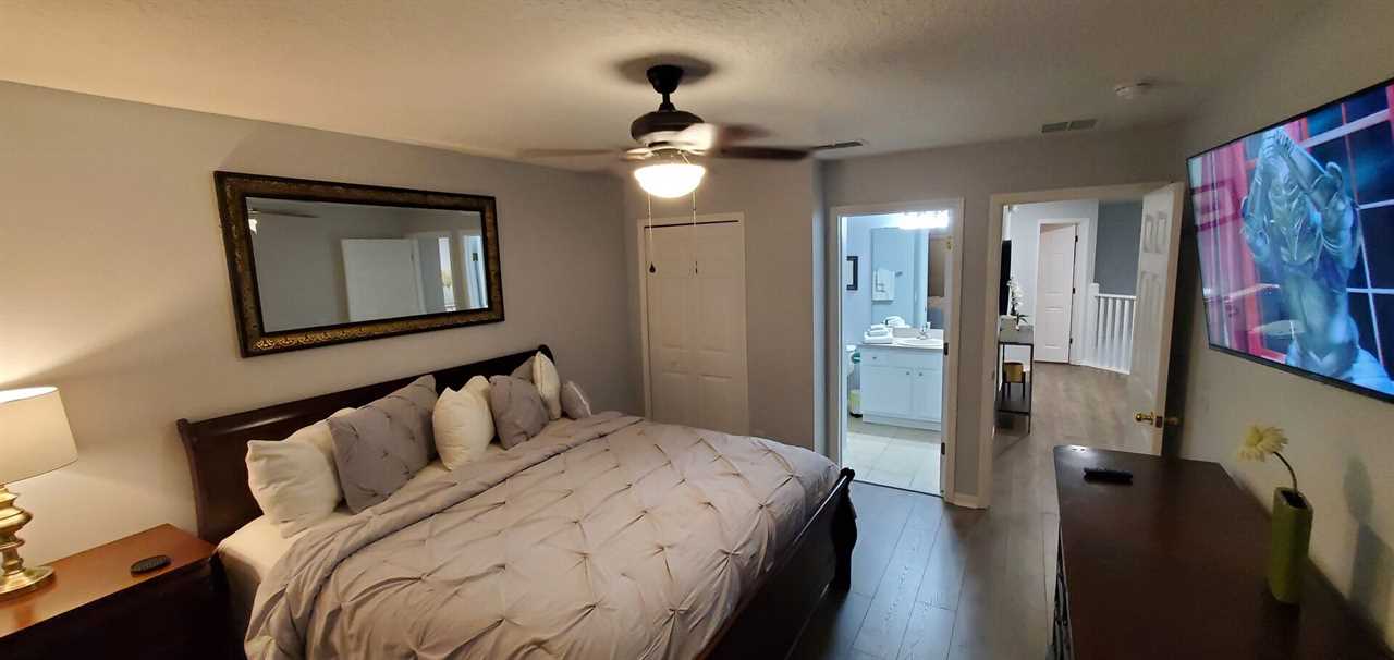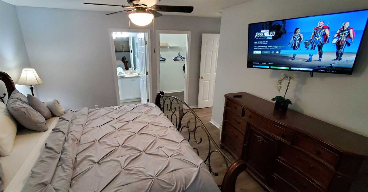 As you enter the home you will find a beautiful open floor plan with a family room and formal dinning area which can seat 6. There is additional seating for 4 guests at the breakfast nook. Enjoy cooking a meal in the spacious kitchen overlooking the breakfast nook and living room. The kitchen is fully stocked with everything you need to cook and serve a nice meal. After clean up, cozy up on the comfortable sectional sofa and relax with your family to watch your favorite movie. The executive suite is also located on the first floor with a walk in closet and en-suite bathroom including his and hers sinks, garden tub and walk in shower.