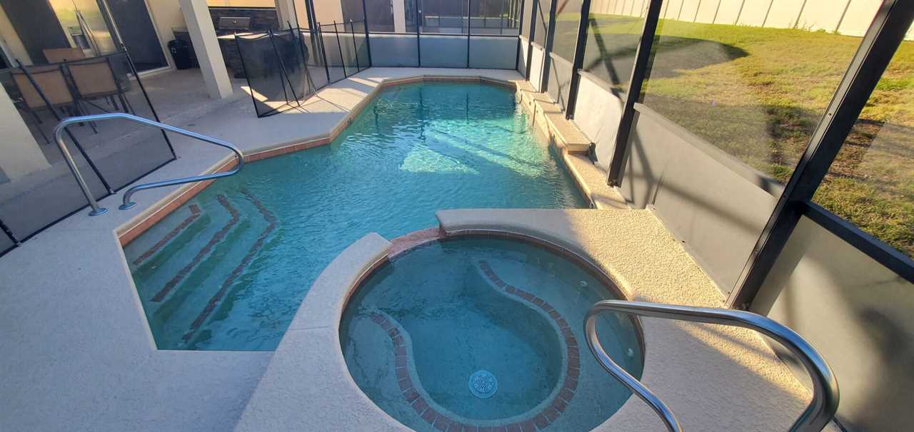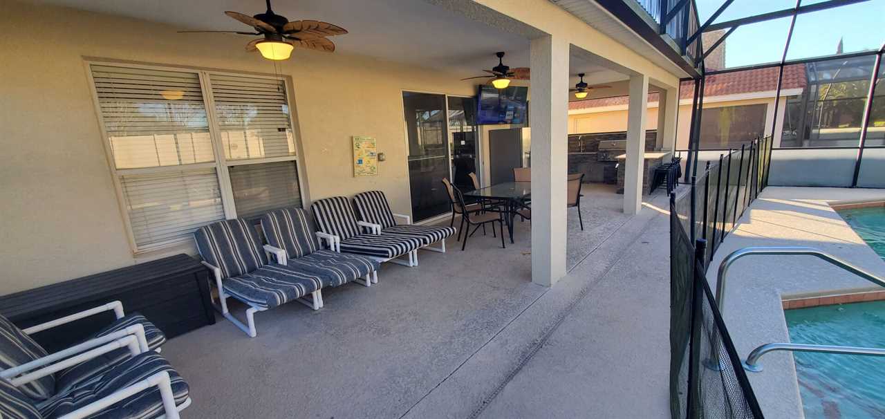 Head back downstairs and take a dip in the beautiful sparkling private pool or enjoy a nice soak in the bubbling spa. Enjoy your lunch on the large covered pool deck, with fans, outside sink, large tv and also your privacy with no rear neighbors!