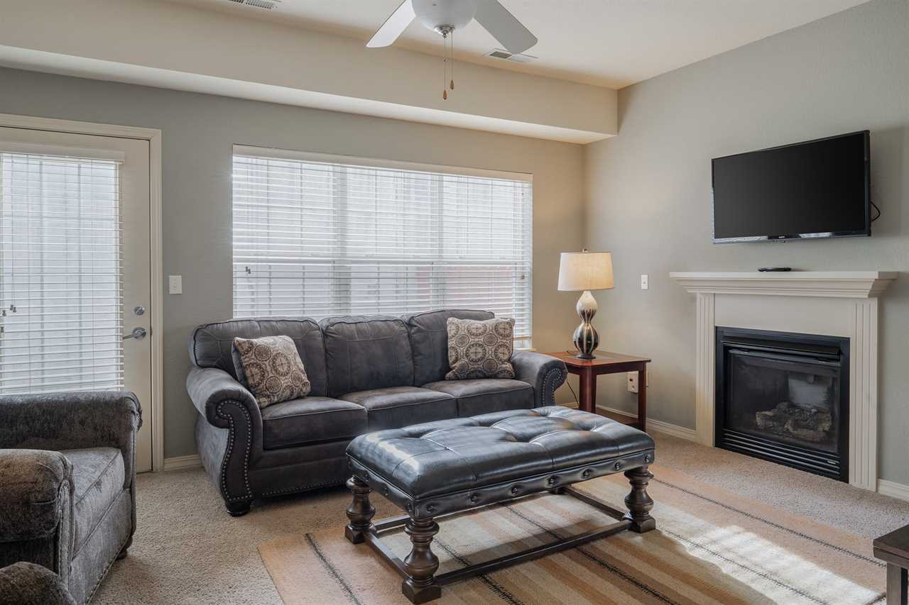 The main level features a spacious living area with a seasonal gas fireplace 🔥, cable TV 📺, and a queen-size sleeper sofa 🛋️. The fully equipped kitchen 🍳 and dining area 🍽️ make meals together easy, while sliding doors open to your private patio 🌳 — complete with a propane grill 🍖 and outdoor seating 🪑. A convenient half bath 🚻 and in-unit washer & dryer 👕 are also located on this level.