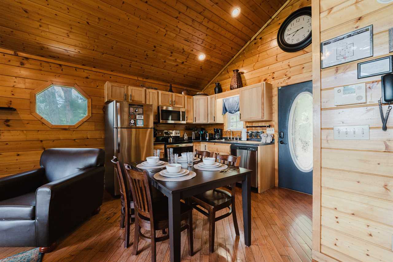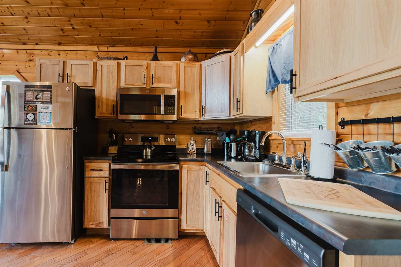 The fully equipped kitchen area is designed to make your stay feel like home. Whip up a hearty breakfast or cook a delicious meal for dinner. The modern appliances include a refrigerator, stove, dishwasher, and microwave, making mealtime a breeze. When it's time to dine, gather around the charming dining room table for four mealtimes, perfect for sharing stories and making memories with loved ones. Whether you're a foodie or just looking for a comfortable place to relax, this kitchen has everything you need to feel right at home. Dish towels, starter soap, and dishwasher starter pods are provided.