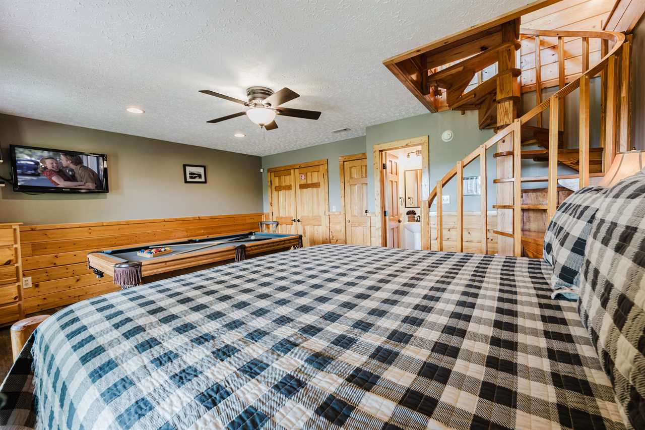 Escape to the ultimate romantic getaway at Ain't No Mountain High Enough in the beautiful Smoky Mountains of Tennessee! This cozy 1-bedroom, 2-bathroom retreat is nestled among the rolling hills and lush greenery, offering breathtaking views of the surrounding mountains. The cabin sleeps four guests comfortably and features Wi-Fi connectivity, making it perfect for a relaxing vacation or a romantic escape. Its warm and inviting atmosphere makes it the perfect place to unwind and reconnect with loved ones. Enjoy a peaceful evening by the fireplace on cool mountain evenings, relax in the hot tub under the stars, stroll through the surrounding woods, or explore nearby attractions and activities in Pigeon Forge. This peaceful retreat has everything you need for an unforgettable mountain getaway!