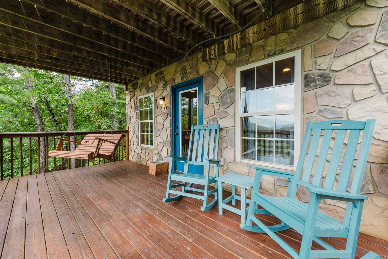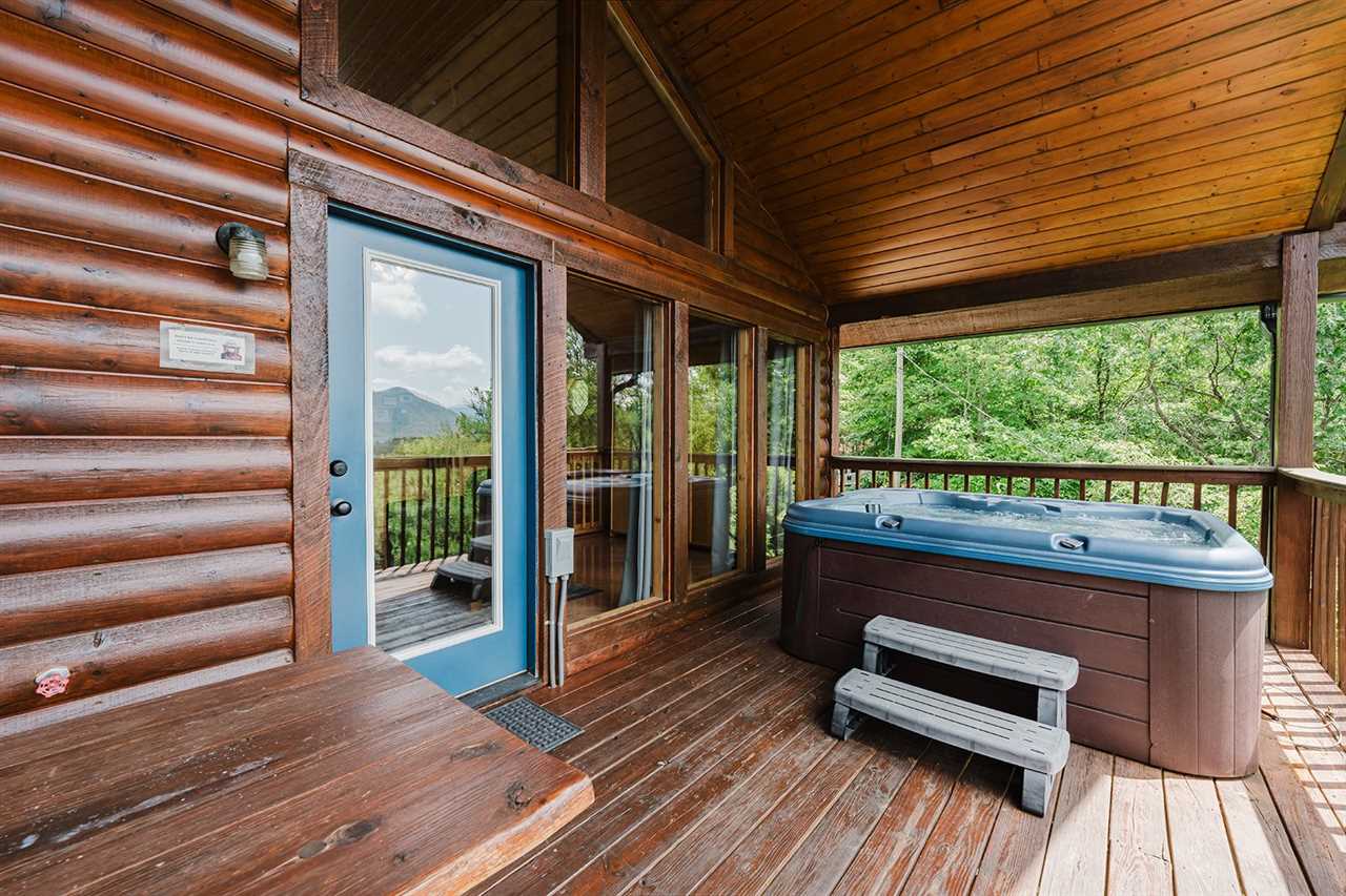 Unwind and soak up the serenity of the great outdoors, where the private outdoor space is designed for relaxation and entertainment. Step outside to a hot tub, perfect for stargazing or unwinding after a long day. Fire up the charcoal grill and cook a delicious meal, then gather with friends and family on the patio furniture or rock in the comfortable rocking chairs. Whether you're seeking adventure or a peaceful retreat, this outdoor space has everything you need to make your getaway unforgettable.